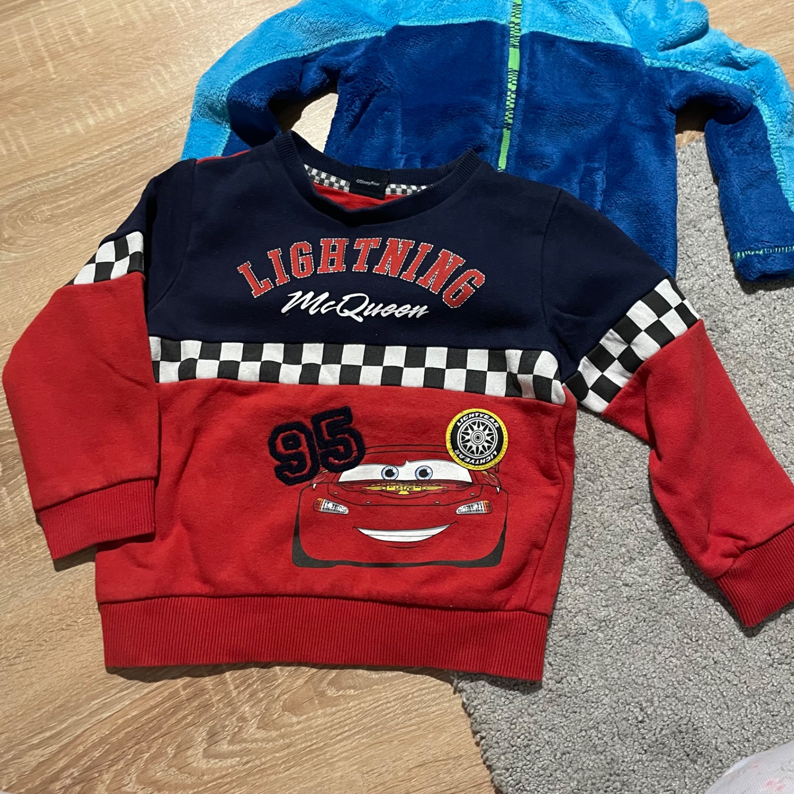 Set obsahuje 2ks mikina hrubá, modrá na zips, cervena prevliekanie cez hlavu, obe velkost 86/92, vo vynikajucom stave.