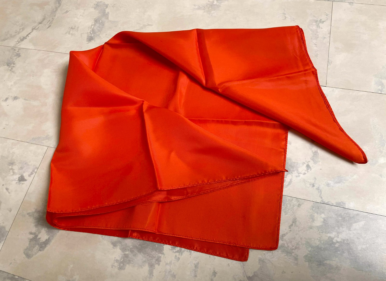 sýta lososovo- oranžová pestrá farba, jemne lesklá,polyester,70 x 70 cm