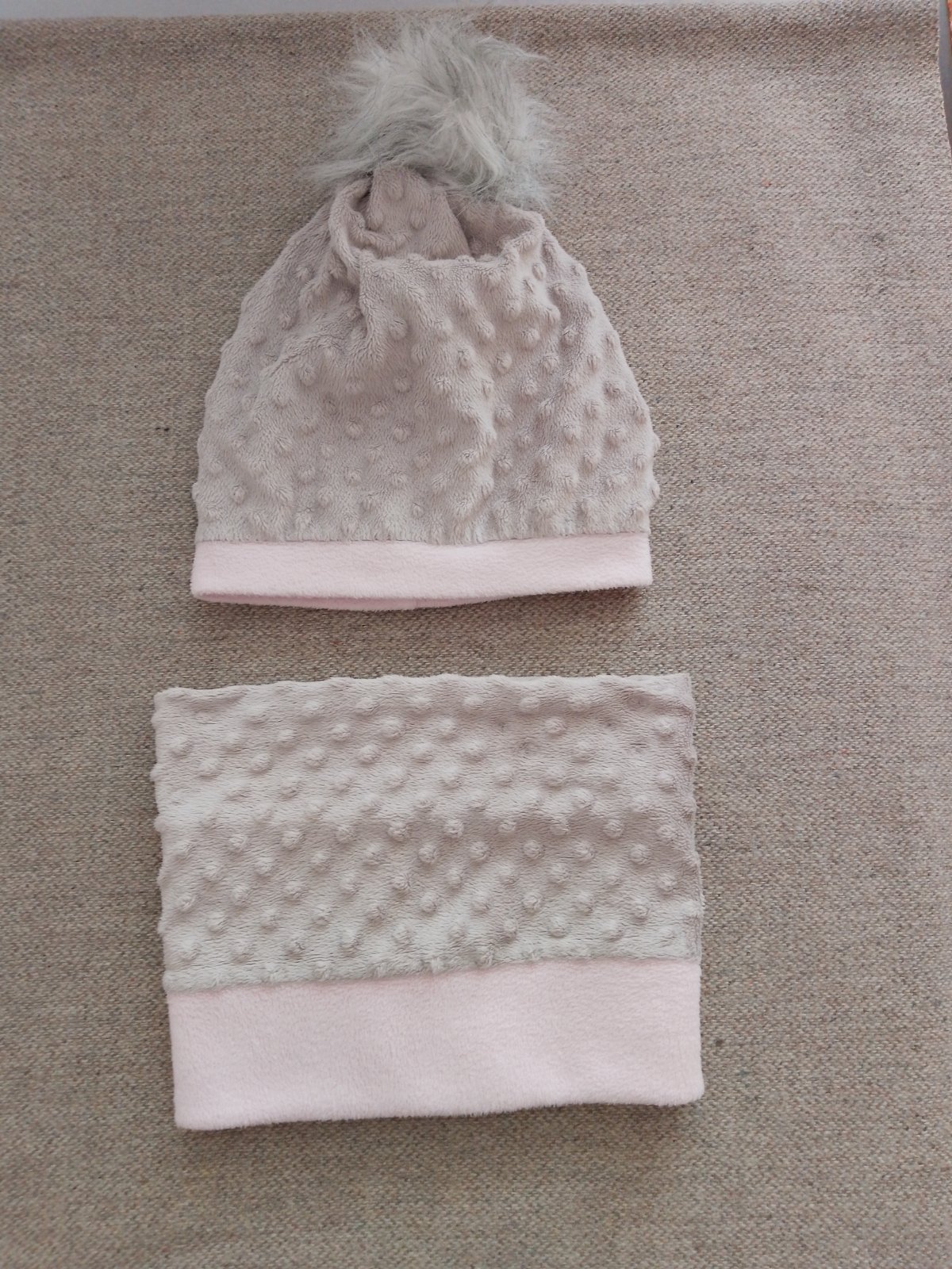 Detský set : zimná čiapka + nákrčník v super stave. Nosené, ale bez poškodenia, dier a fľakov. Len drobučké minižmolky. Rozmery - viď foto. Čiapka aj nákrčník sú podšité mäkkým a hrejivým flísom. Vrchná vrstva je tiež flís. Ku čiapke je huňatý brmbolec, ktorý sa dá odopnúť. Čiapka sa dá nosiť s brmbolcom aj bez neho.