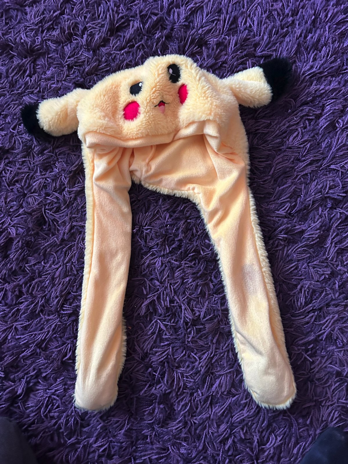 čiapka s pohyblivými ušami. Pri stlačení labky sa jednotlivé uši dvíhajú a pohybujú. Kedysi aj blikala, ale už sa asi vybili baterky.