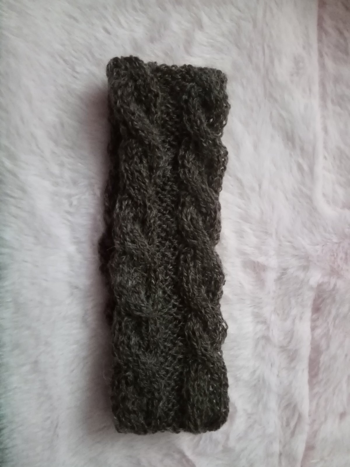 Detská pletená čelenka v hnedej farbe. Vlnena.