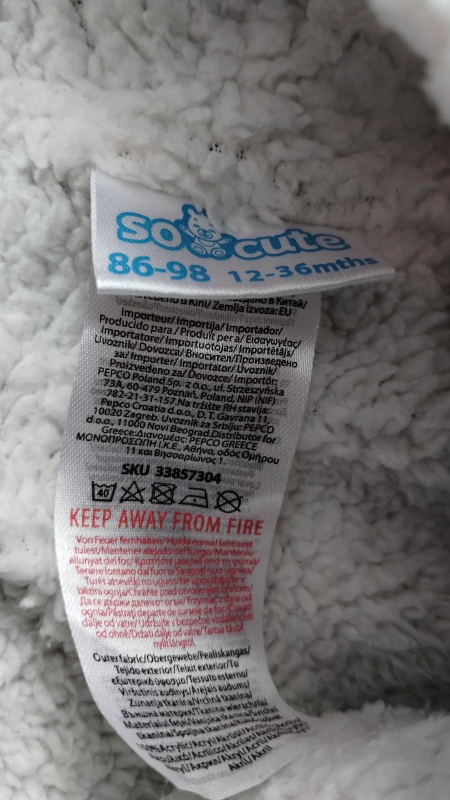 Známky nosenia nafotené - žmolky a zašitá dierka. Set je 2-vrstvový, veľkosť 1-3roky