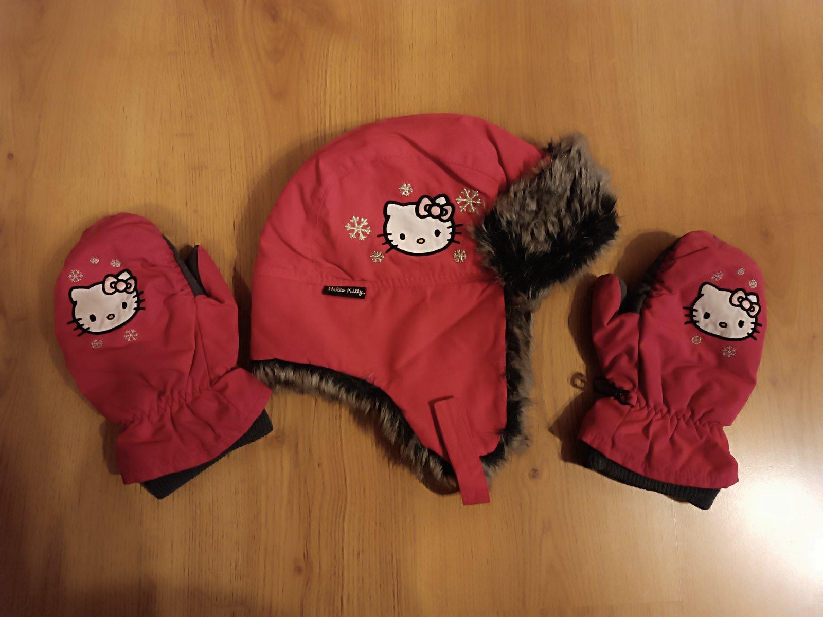 H&M Hello Kitty zimná čiapka - baranica/ušianka a rukavice - palčiaky. Čiapka s kožušinkou, pod bradou možno zapnúť na suchý zips, rukavice so všitou ochrannou manžetou proti snehu a zafukovaniu. V...
