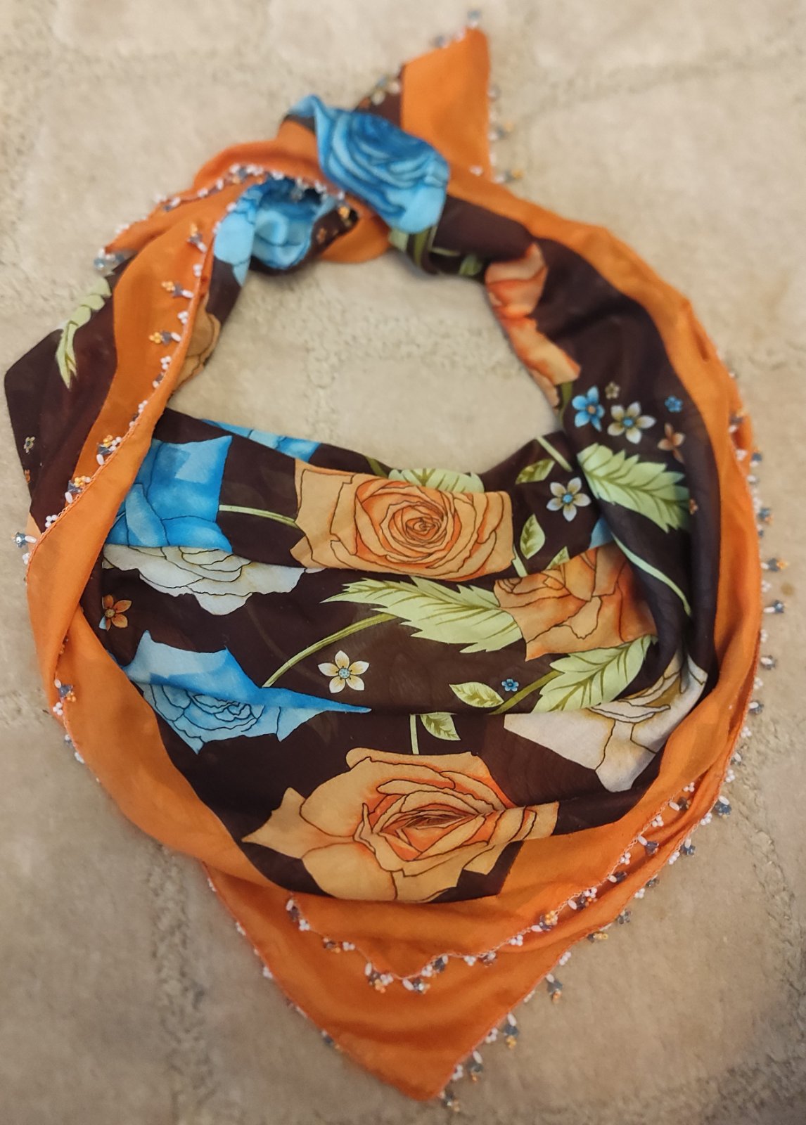 Oranžová šatka s kvetmi