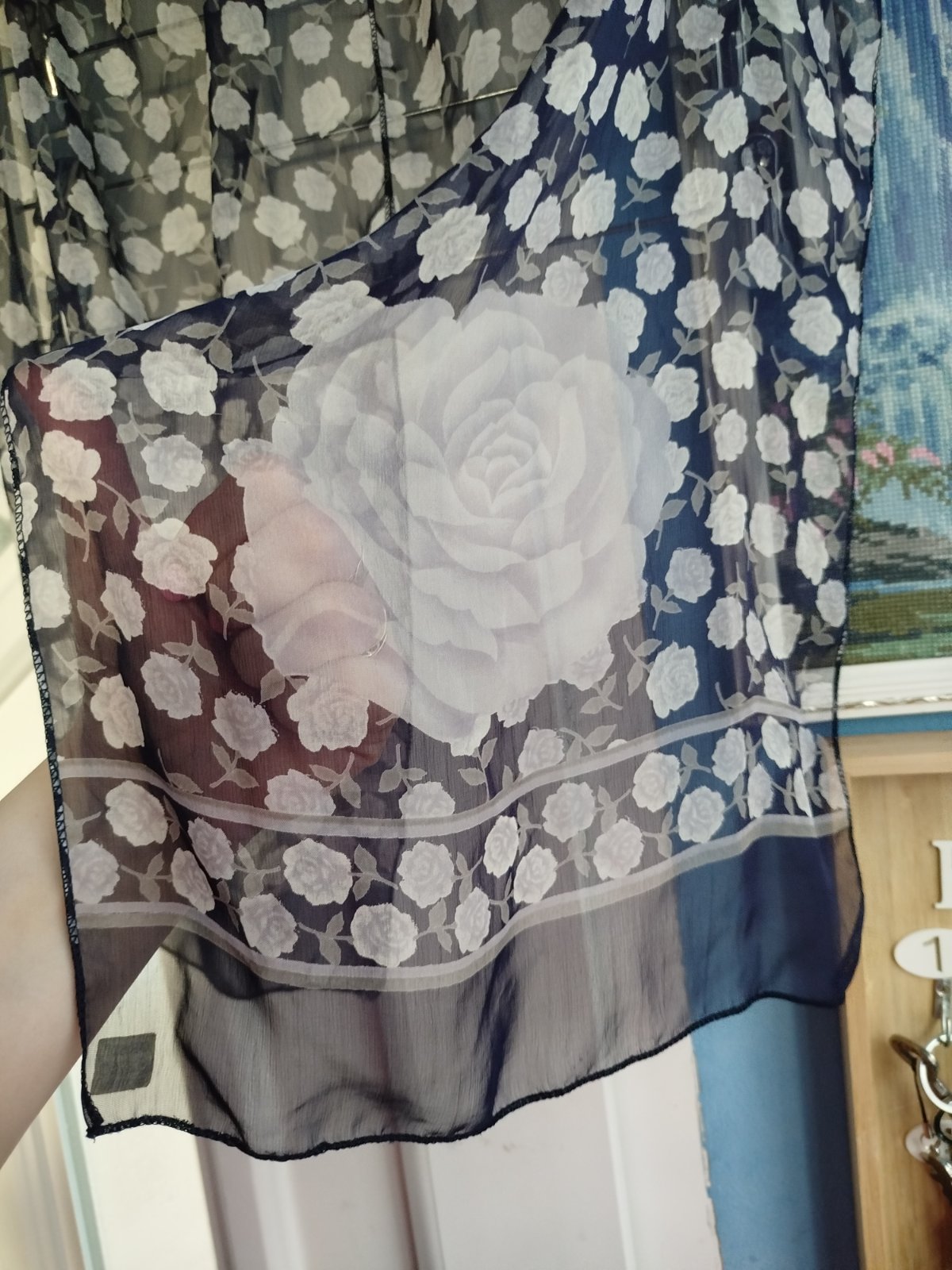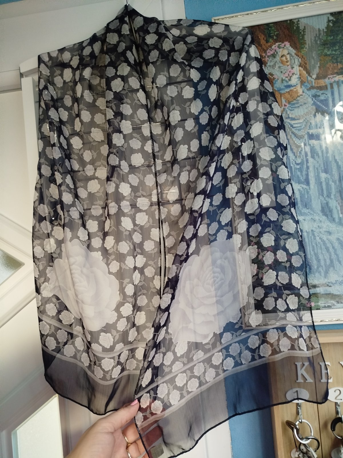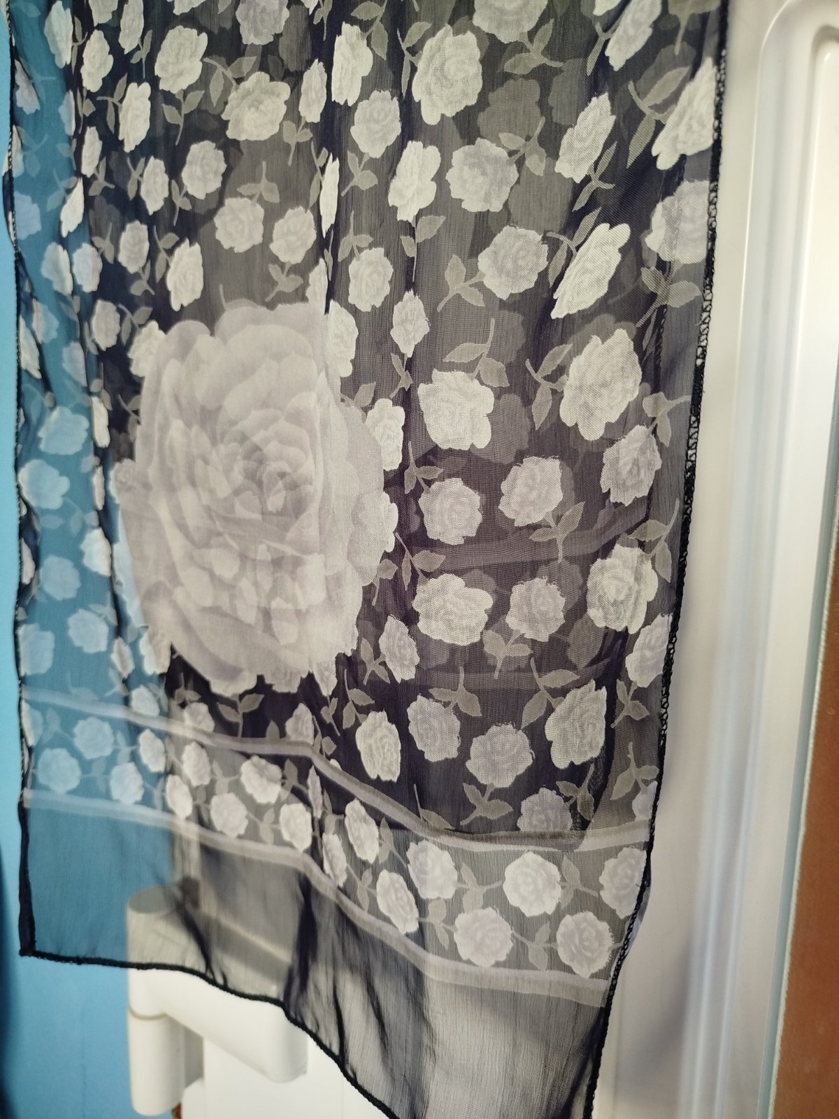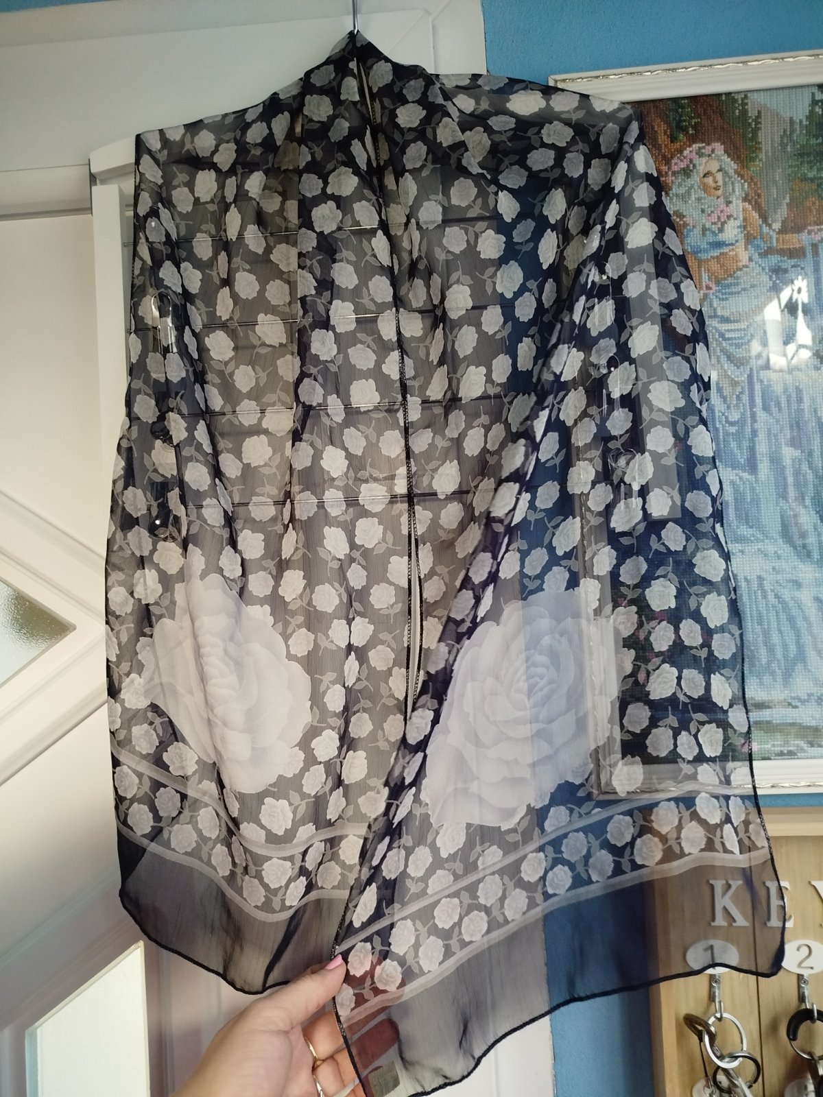 - pekna, zn.Orsi, na konci chýba 2cm- ové šitie, ani nevidno pri nosení, inak bez poškodenia,140x33cm