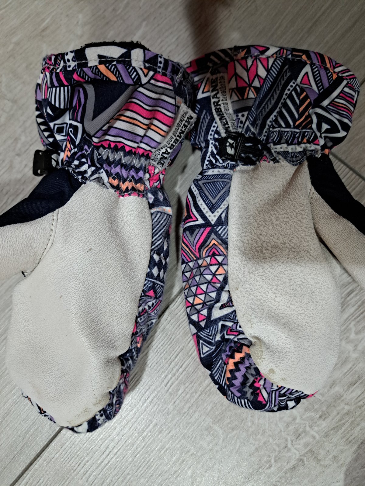 Fialove rukavice nenosene, dlhe proti vniknutiu snehu- na10r- cena 12e, fialovobiele nosene trochu osuchane ale nepremokave vid foto- cena 3e... ruzove s obrazkom malo nosene- 4e, tmavoruzove gratis- cena spolu 18e