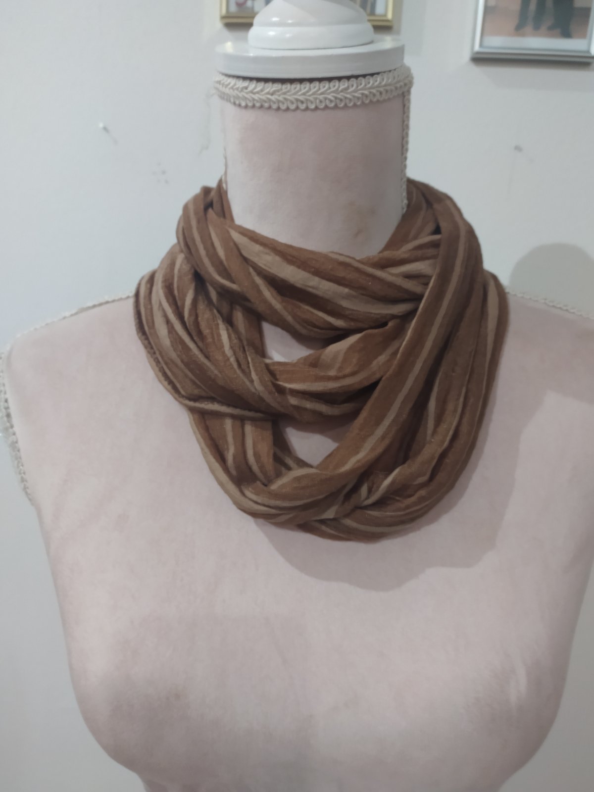 Šatka, tenká, polopriesvitná, možnosť nosiť ako pareo/ na plavkách/, hnedočierny hadí vzor. R: d: 172cm, š: 102cm. Nosená minimálne.