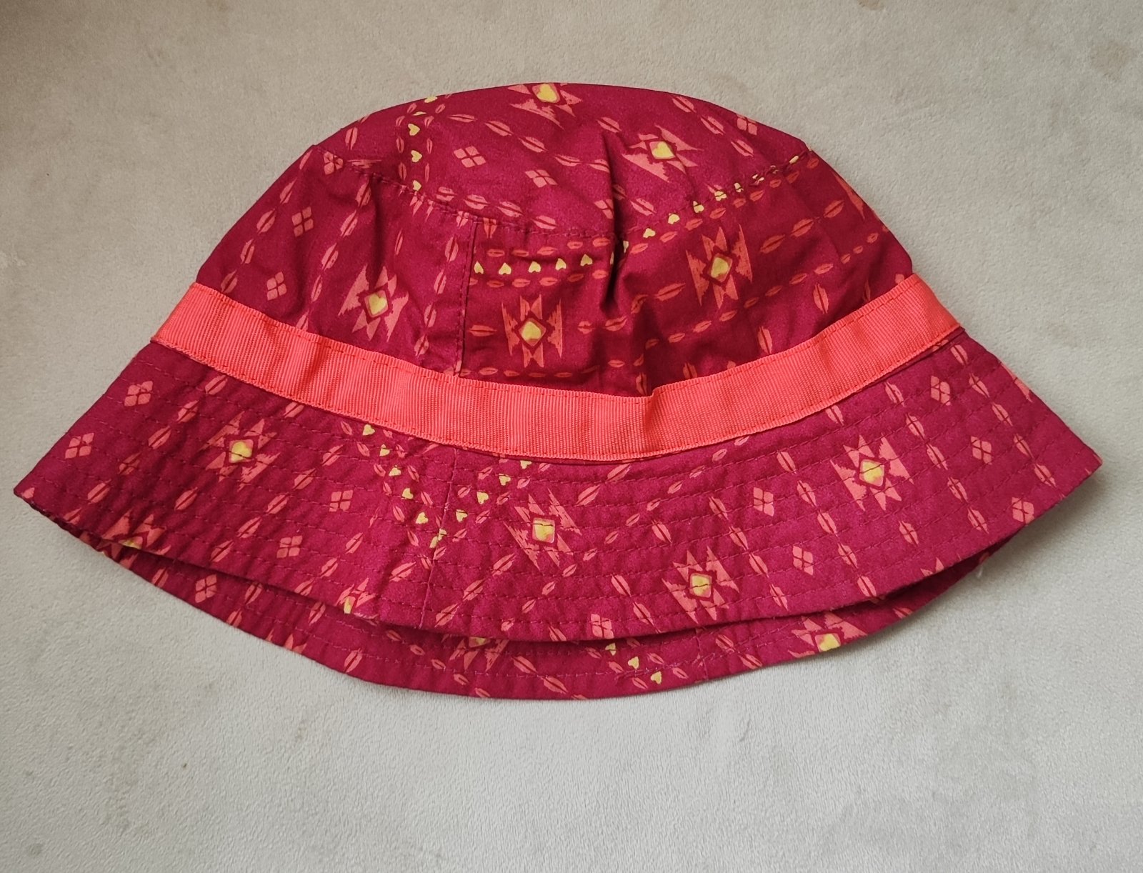 Nepremokavý klobúčik do dažďa. Z vnútornej strany podšitý látkou. Veľkosť na cca 3-5 rokov, podľa obvodu hlavy. Klobúk ma obvod 51cm.