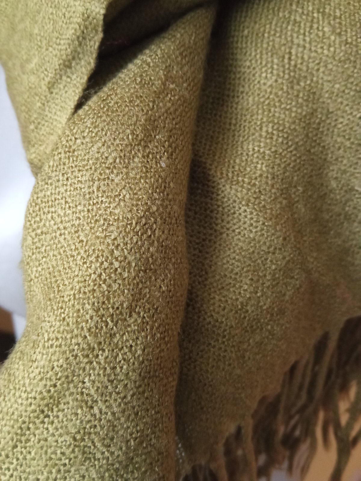Krásny šál olivovej farby,viac do zelena ako je na fotkách,je to zmesovy materiál s podielom vlny ,aj keď je tenší,pekne hreje