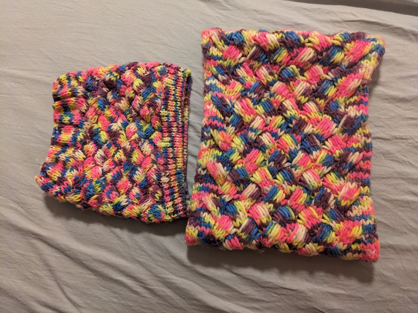 Ponukam krasny ziarivy set na zimu. Nakrcnik a celenka - skoro ciapka. Dobre sa da prestrcit cop v hornej casti. Pouzivane, vidiet, ze nie je novy.