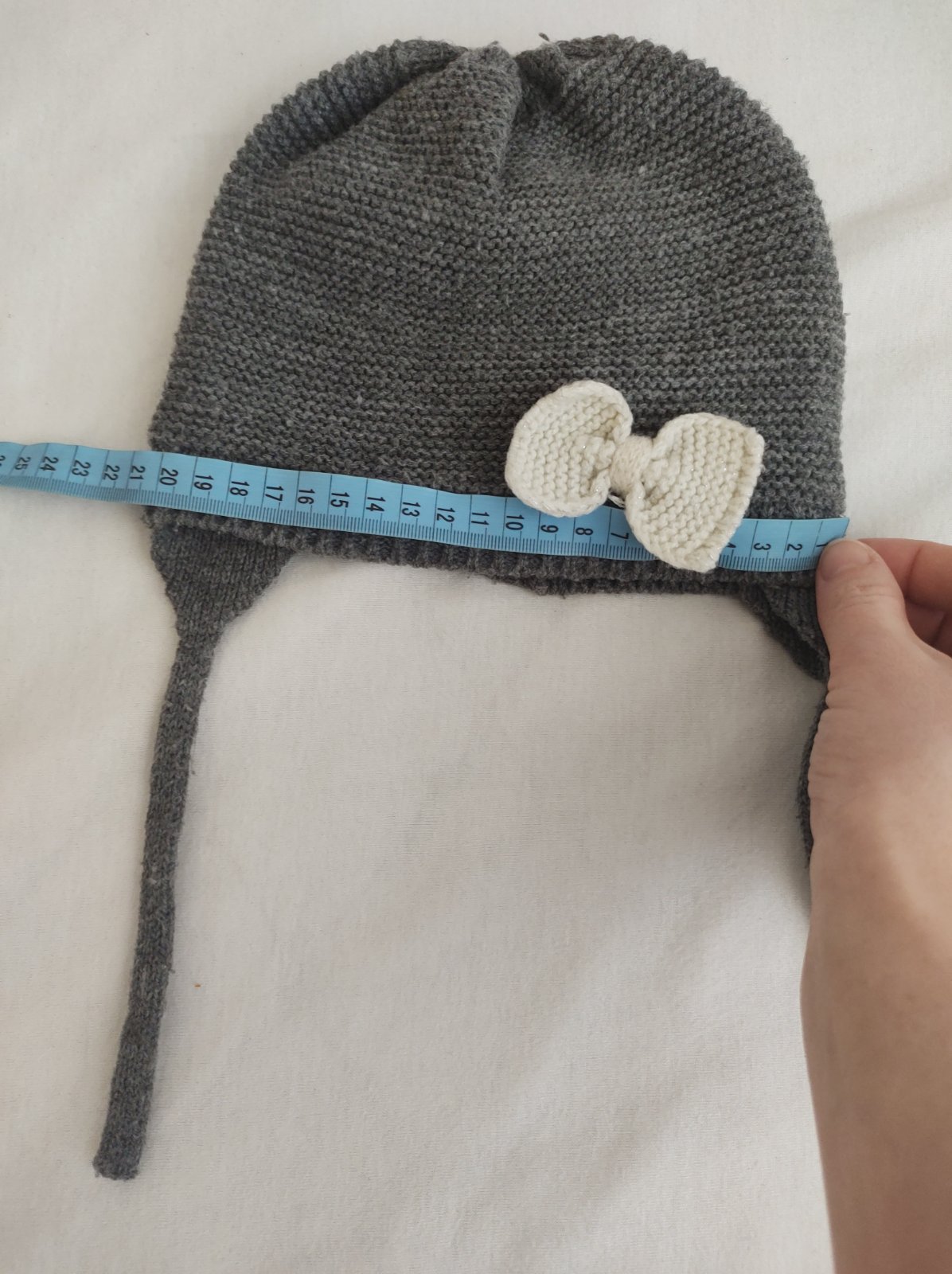 Teplé zimné čiapky, už chýbajú štítky, ale veľkosť sedí na 80 (na 9 - 24 mes.), prikladám aj rozmery na foto. Majú šnúrky, dajú sa uviazať okolo krku.