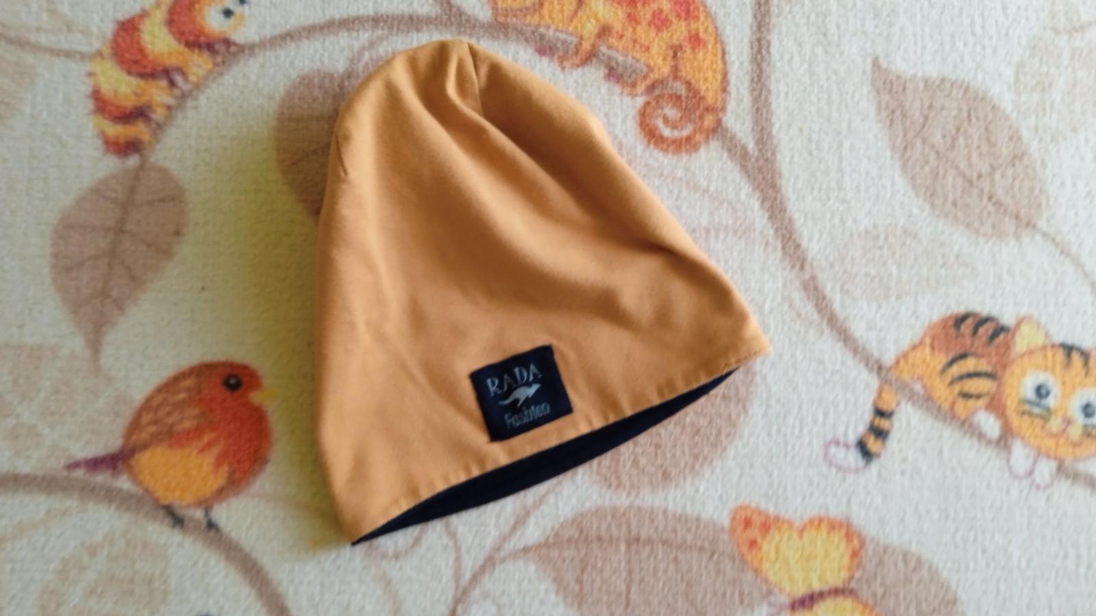 Ponúkam krásnu kvalitnú čiapku na prechodné obdobie. Značka RADA. TOP STAV. Obojstranne využiteľná - horčicova a tmavomodrá farba. Dvojvrstvová. Veľkostne sedí od 6 rokov, tak sme nosili my. Predĺžený tzv. šmolkovy strih. Cena 7 eur + poštovné.