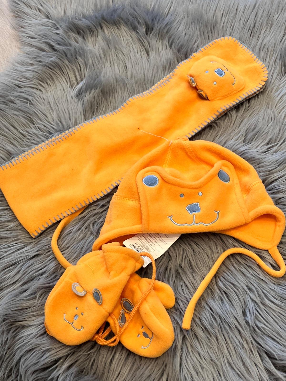 Oranžová súprava čiapka, šál, rukavice (12-18mes.)