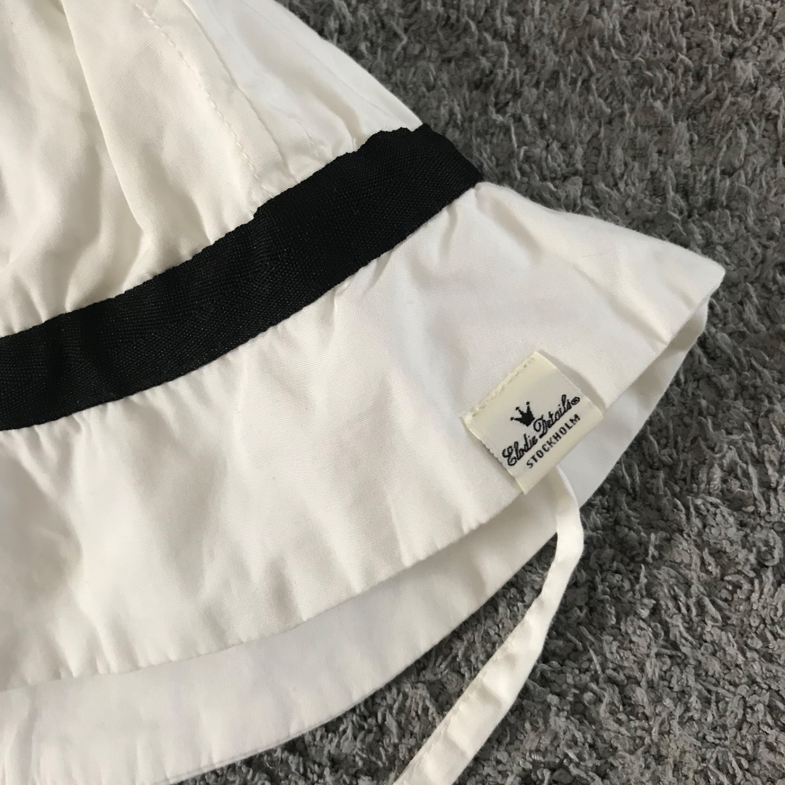 Slnečný klobúk Precious Preppy - Ochranný klobúčik značky Elodie Details je vyrobený zo 100 % bavlny s certifikátom Oeko-Tex. Príjemne a pohodlne sa nosí. Má extra široký okraj na dodatočnú ochranu krku. Klobúčiky sú mimoriadne všestranné. Upravením a zložením okraja a šnúrok môžete vytvoriť veľkosť a štýl, ktorý vám vyhovuje.