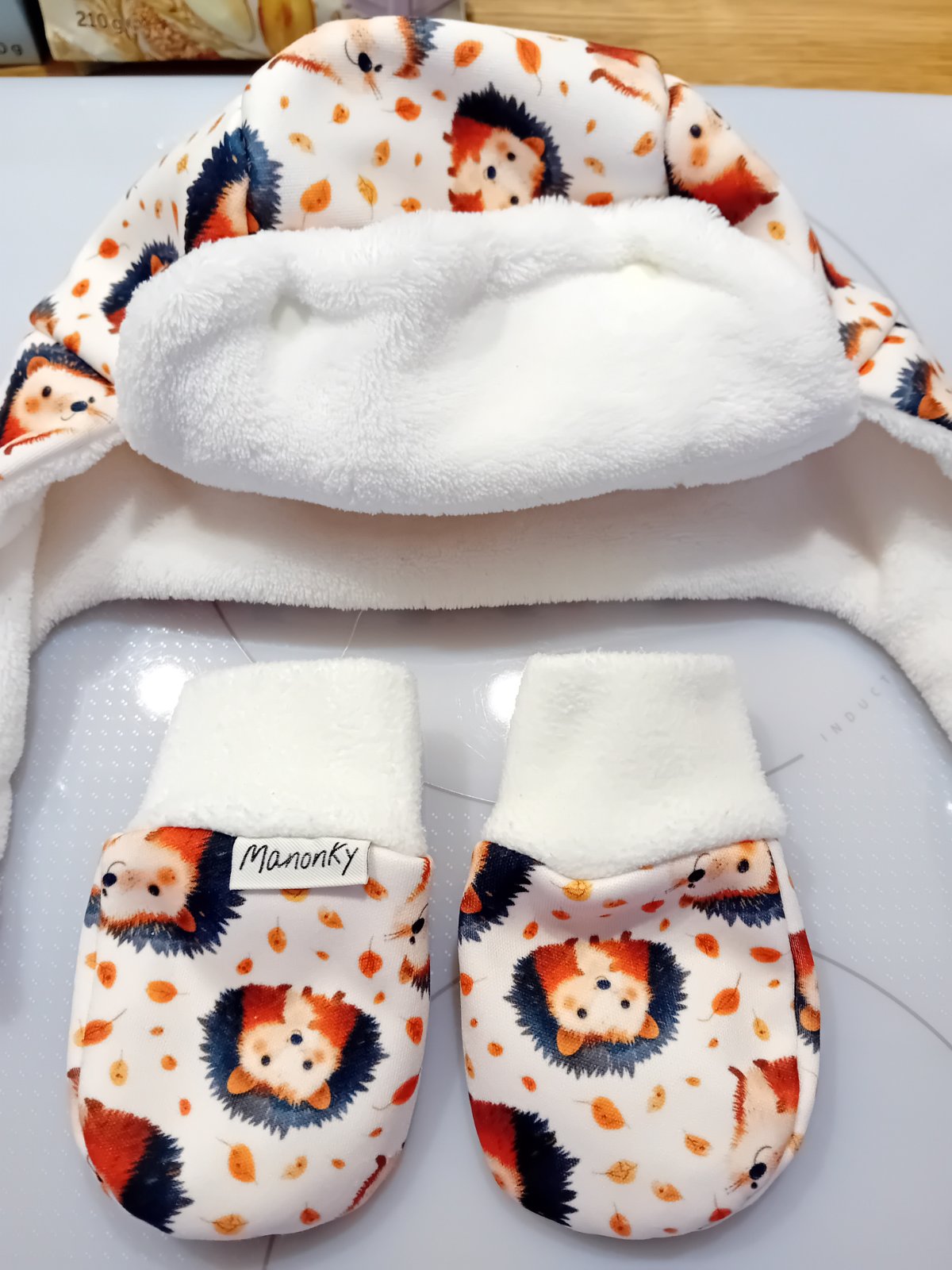 Čiapka plus rukavičky s ježkami handmade