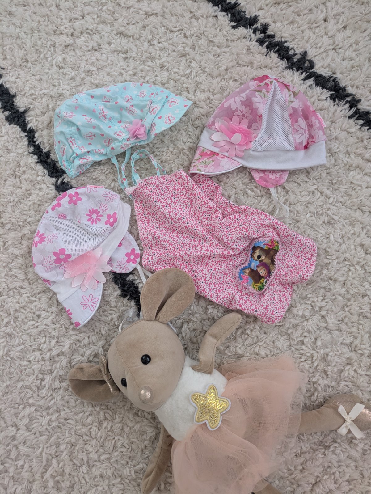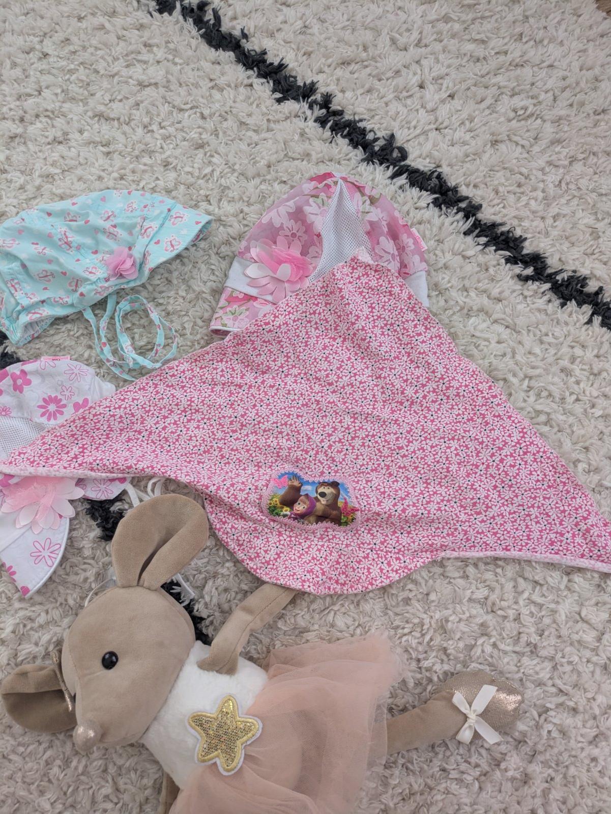Čiapky/klobúčiky na leto a šatka, veľkosť na 3-6 mesiacov
