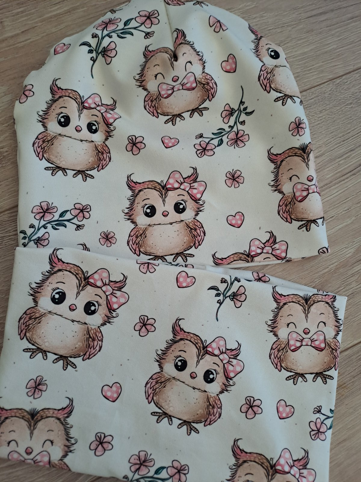 Predam jarnu supravicku - ciapka a nakrcnik. Robena na objednavku. Ciapka ma abvod 47-49 cm, tak na 4-6 rocne dievcatko. Nakrcnik je na jedno otocenie. Cena je za cely komplet.