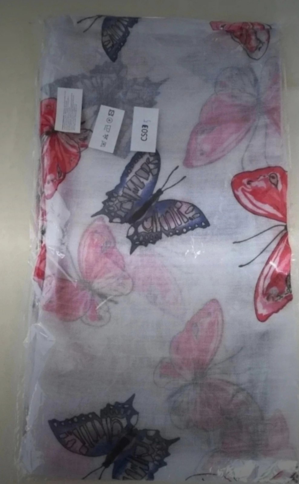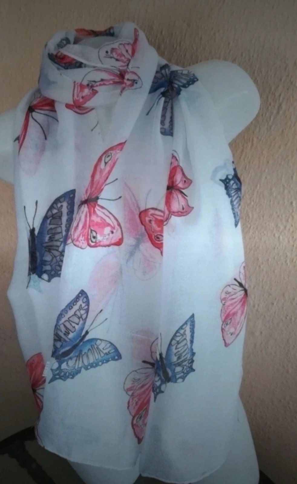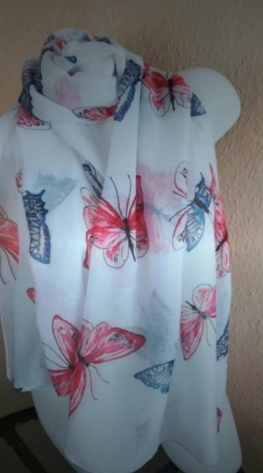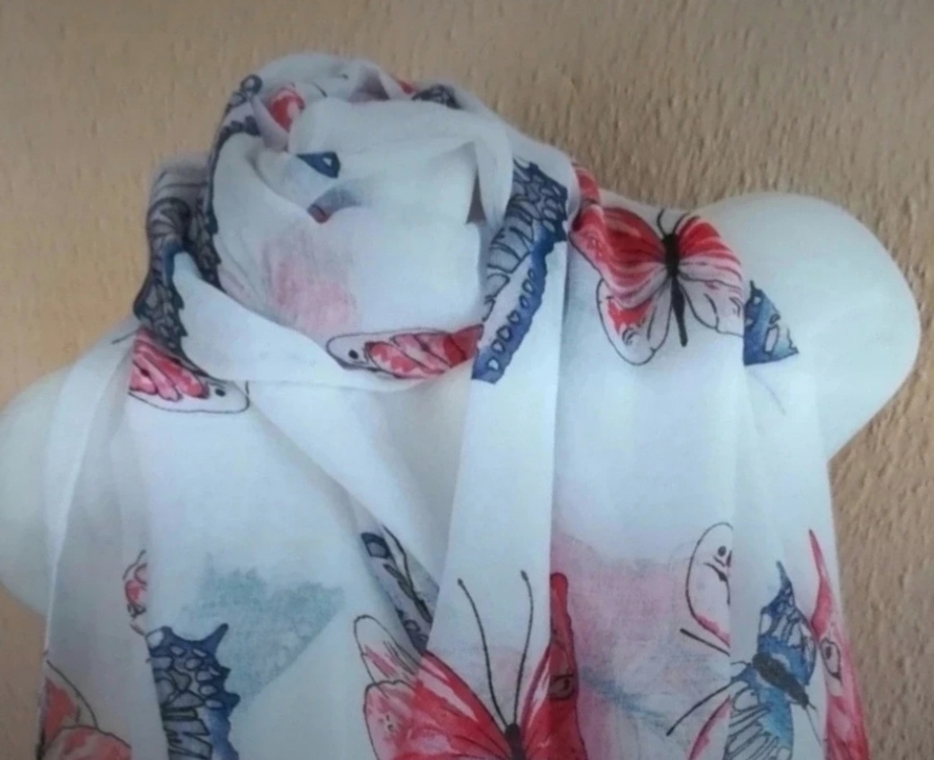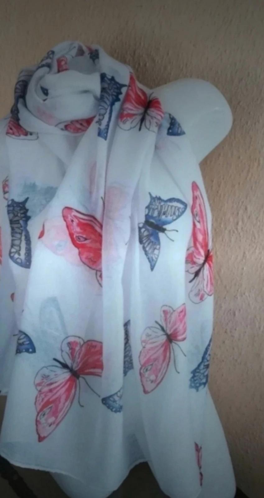 Elegantná, jemnučká, dámska šatka, svetlučko sivá, so vzorom motýľov, nová, nenosená