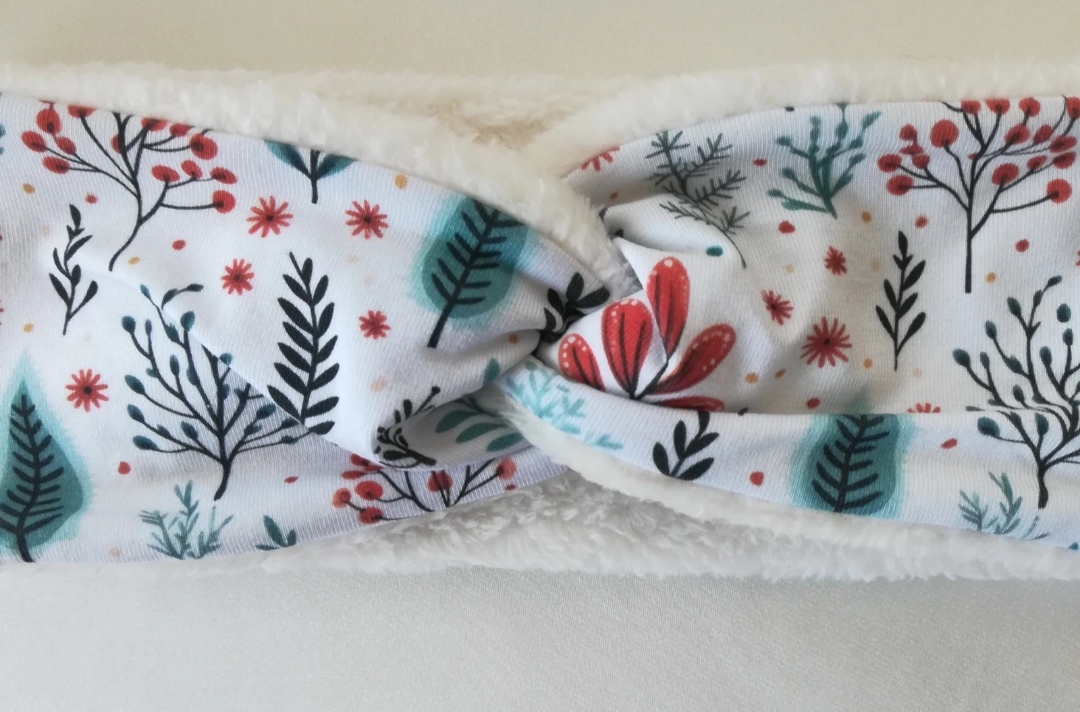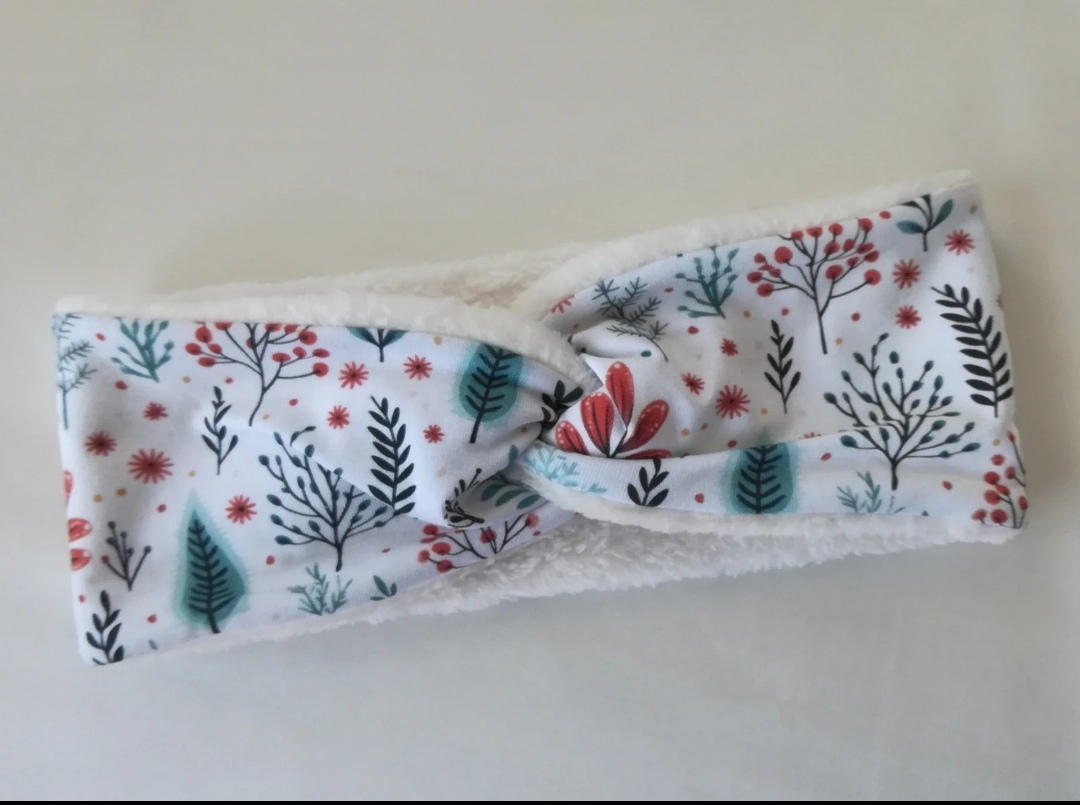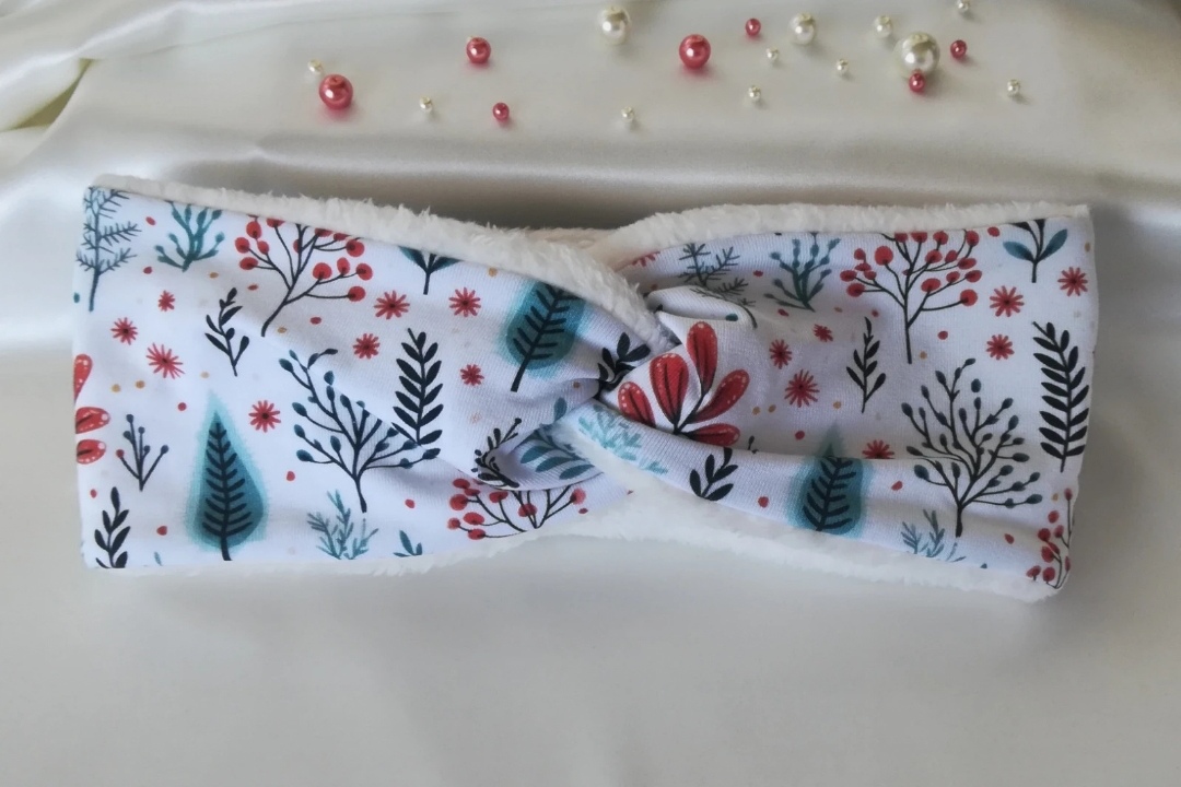 SkladomNová, krásna, úpletová čelenka v bielej farbe so zimným vzorom z mojej dielničky, čelenka je ušitá z dvoch materiálov.
