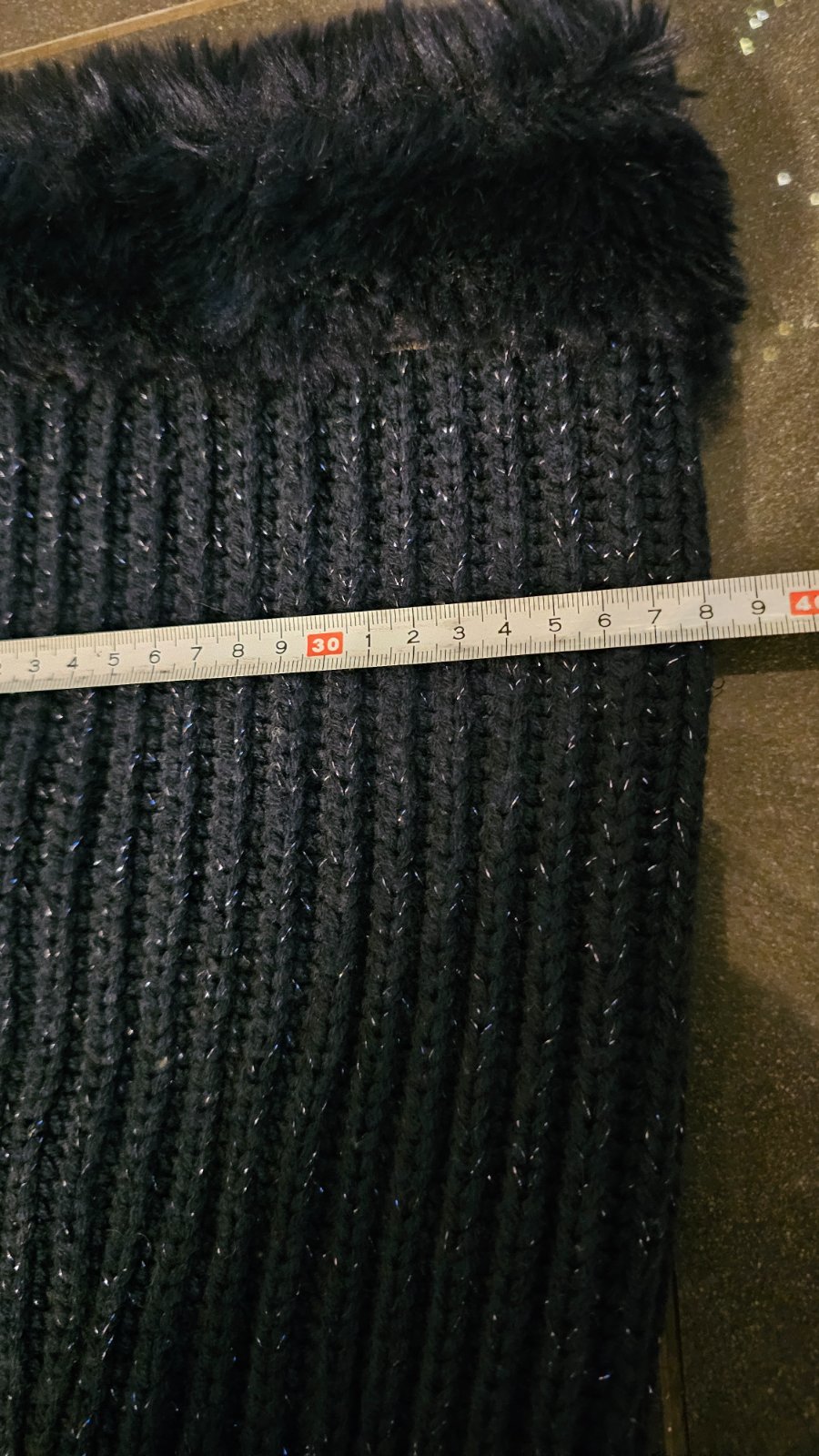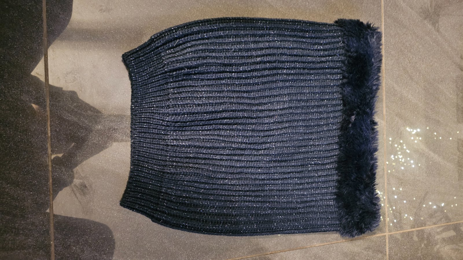 Tmavomodrý veľký šál s kožušinou