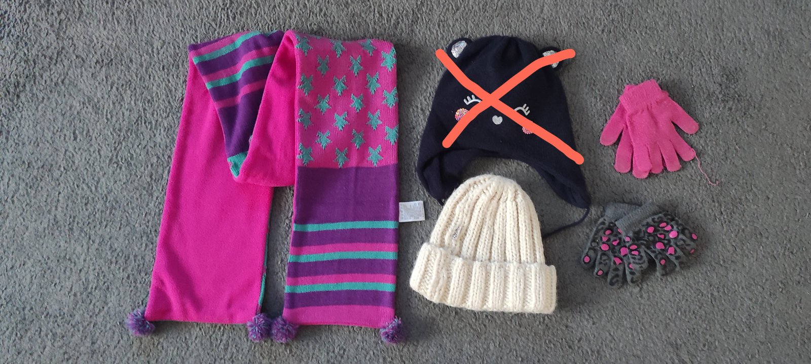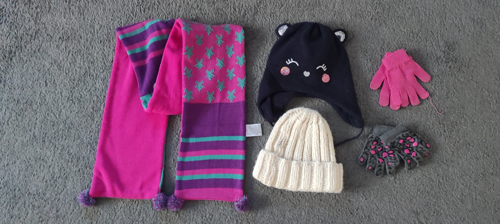 Šál je nový. Ostatné veľmi dobrý stav. Mali sme ich veľa nestihli sme vynosiť.
