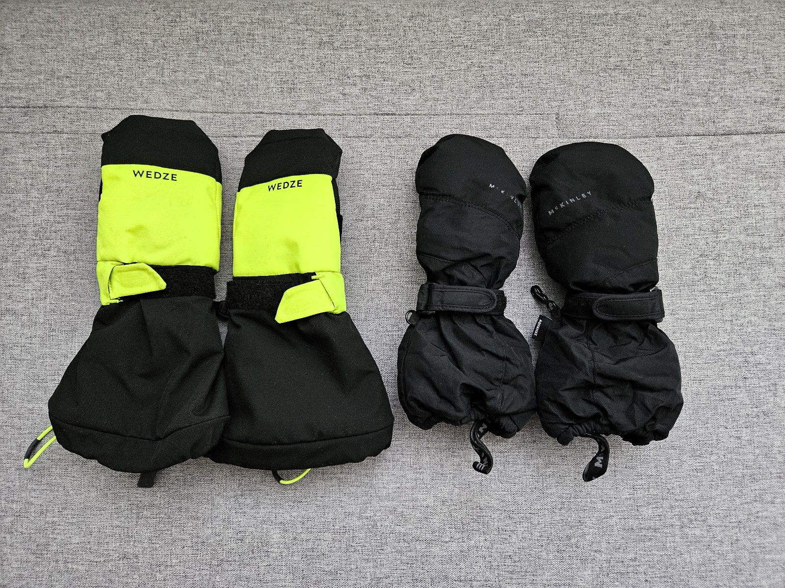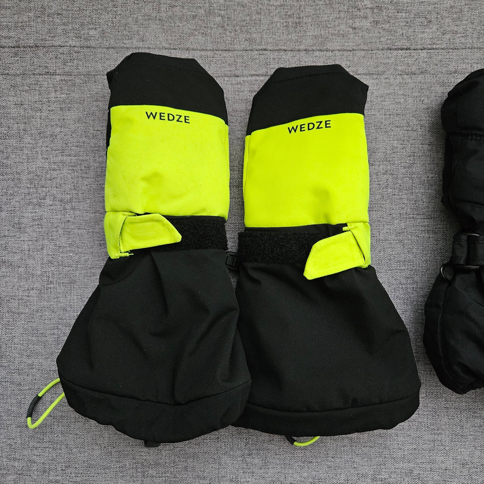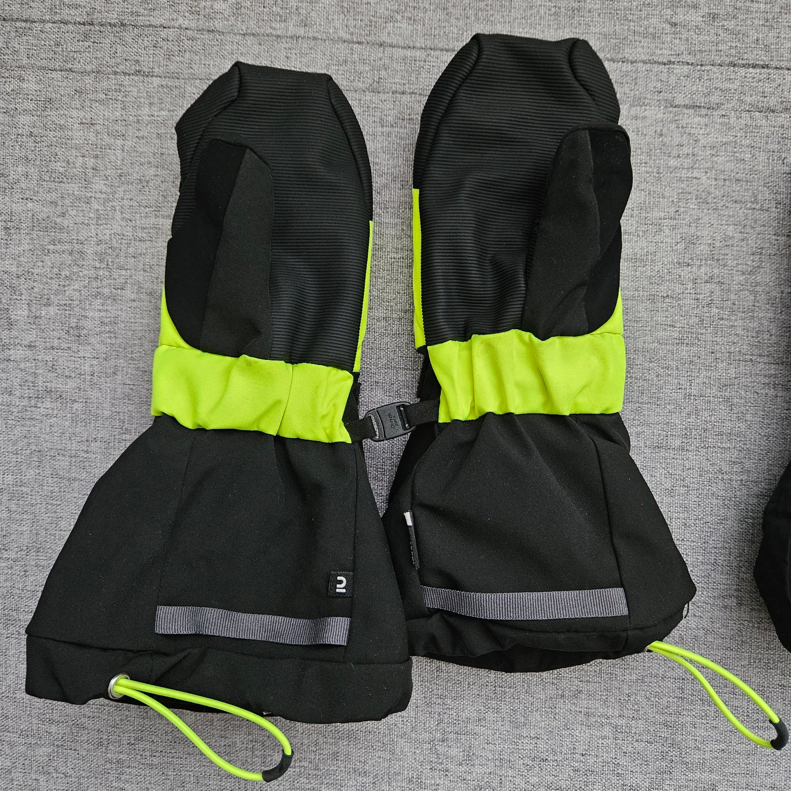 - čierno-reflexne žlté zn. Decathlon Wedze - hrejivé a nepremokavé, so širokou manžetou, ako nové, použité asi 1x, vhodné pre 6 ročné detičky - 17e