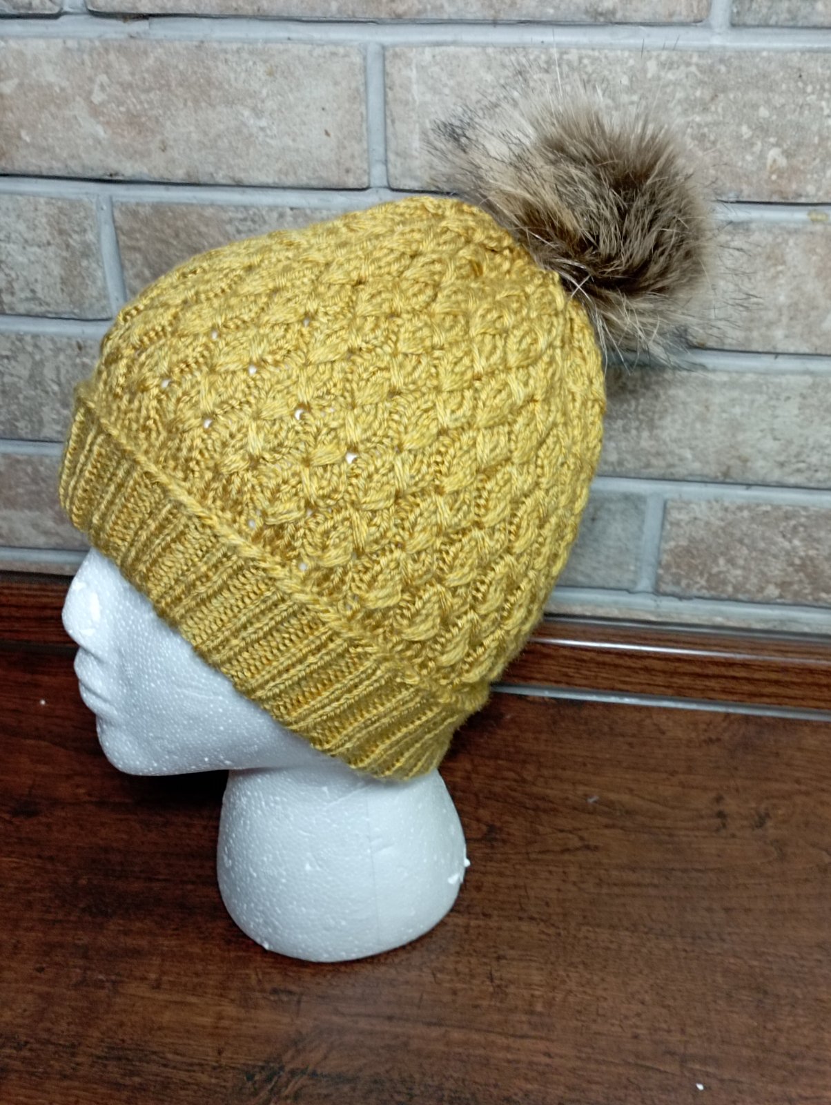 Ručne pletená teplá čiapka z kvalitnéj akrylovej priadze, nežmolkuje a je príjemná na nosenie. Sedí dobre na každej hlave. Pekná horčicovo-žltá farba.