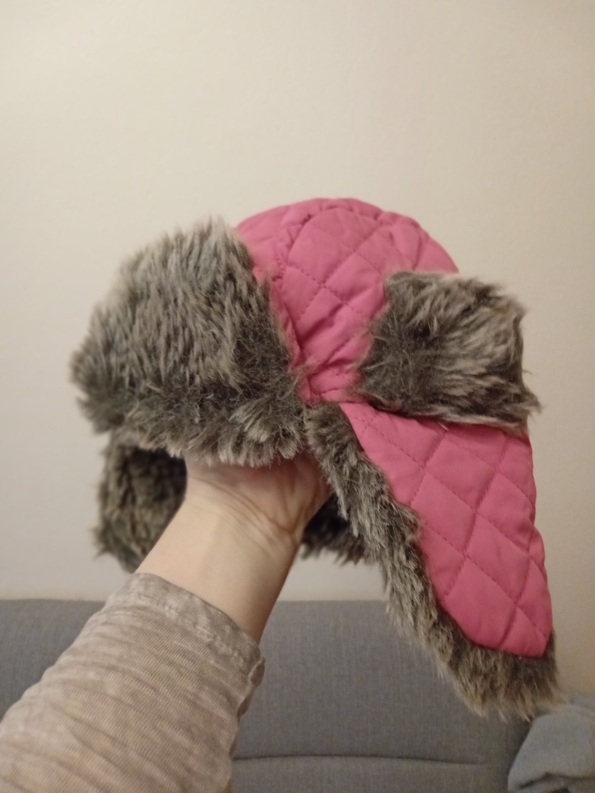 Teplá ružová "chlpatá" čiapka s dlhými ušami, podšitá flisom. Veľmi málo nosená. Top stav. Nemá štítok s veľkosťou, dcéra ju nosila ako 10-ročná, cca s veľkosťou 134. Je však prispôsobivá, oblečie...