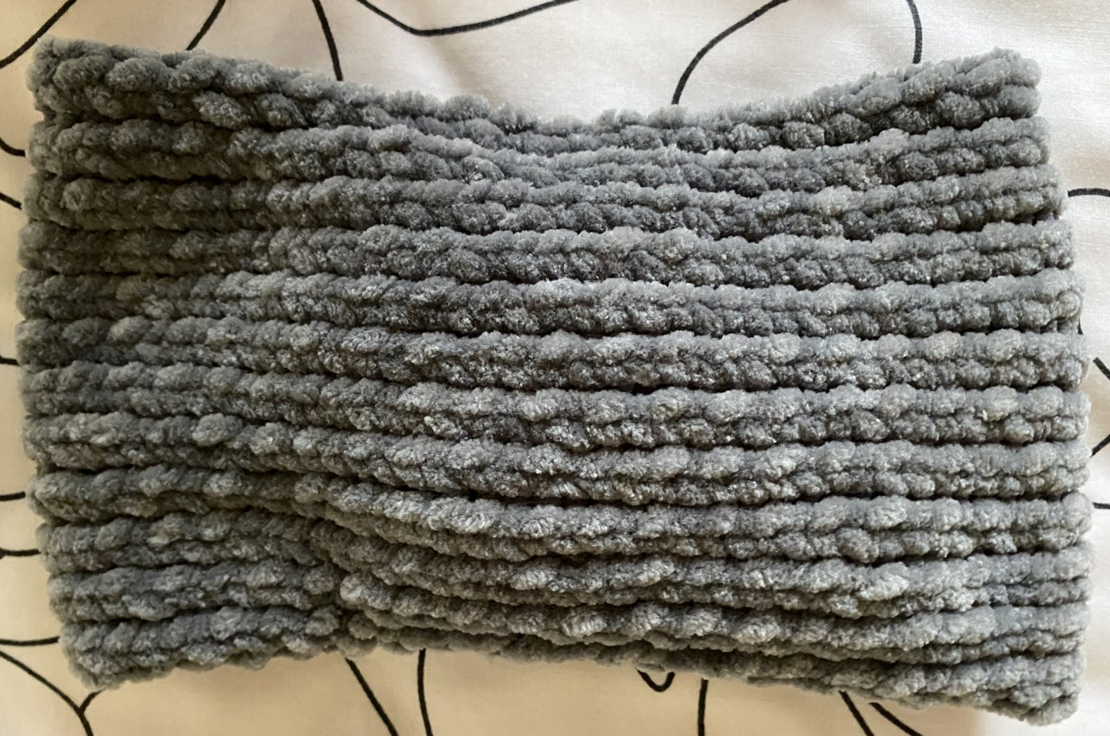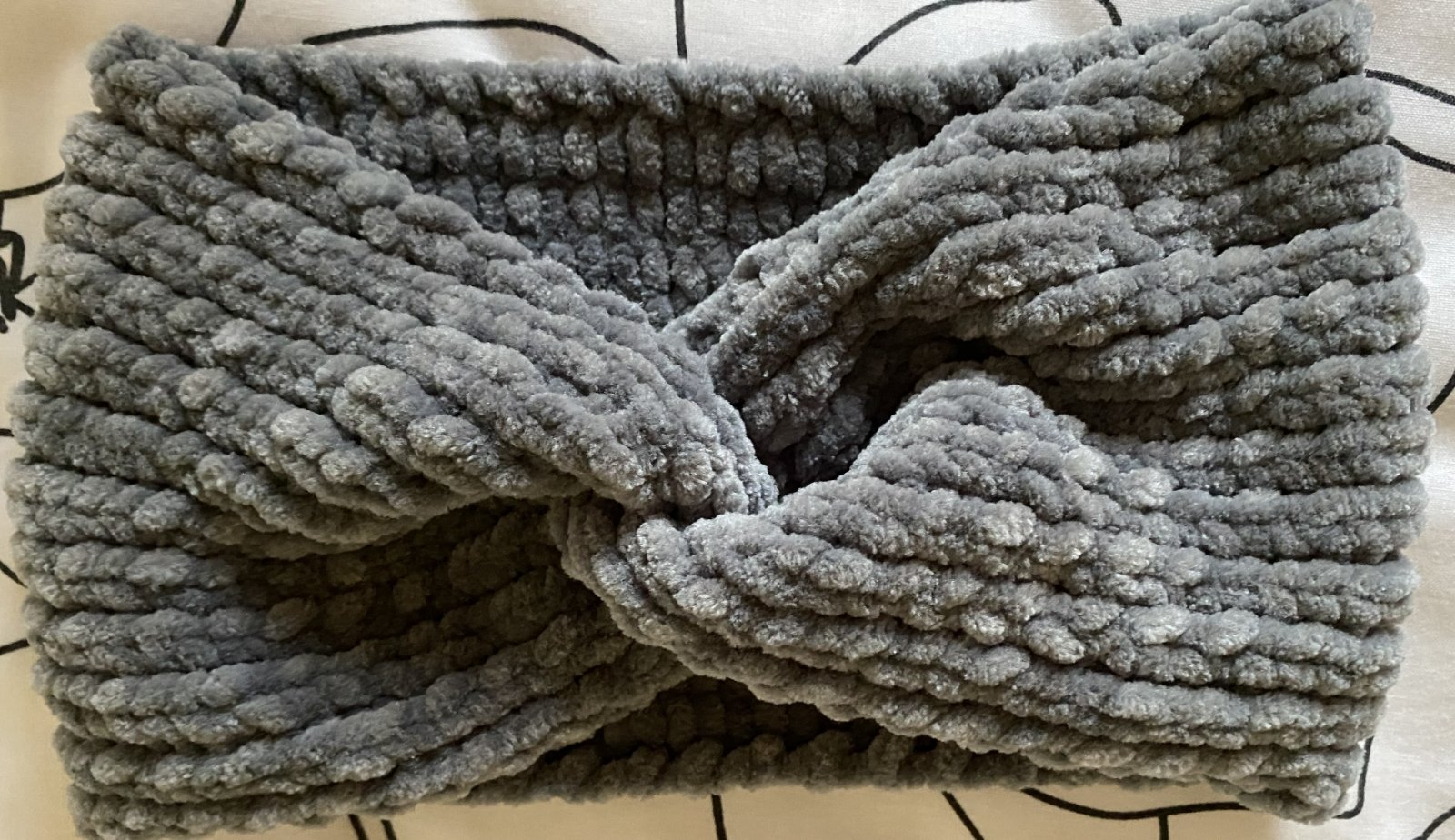 Ručne pletená čelenka - nenosená, iba opratá, maslová farba, jemný, mäkký, hrejivý, pružný materiál - prispôsobí sa, výška 12cm.