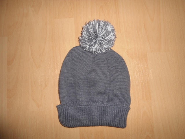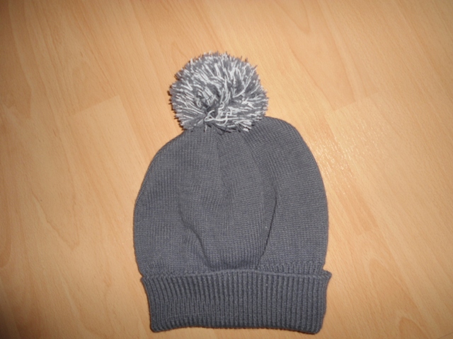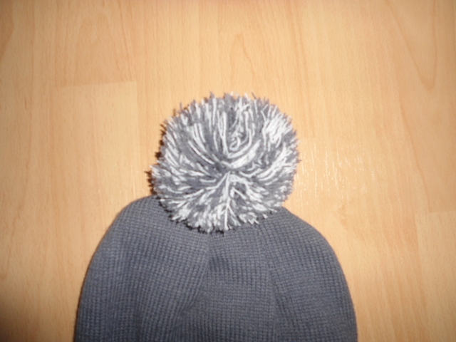 264p. siva damska ciapka s brmbolcom, velk. S, bavlna, minimalne nosena, posuvame dalej, dookola 40cm v klude plus guma, vyska 21cm plus brmolec 7cm