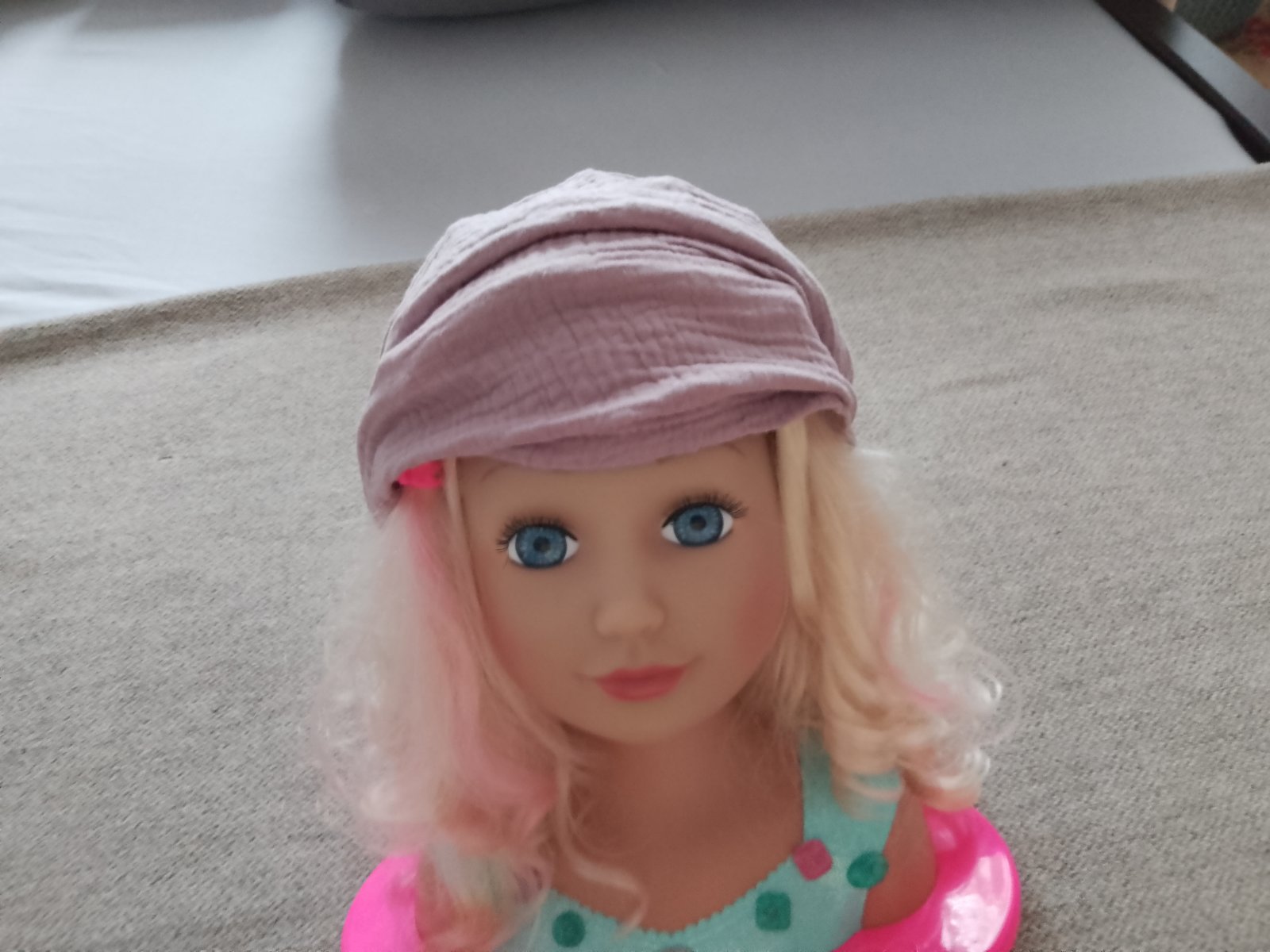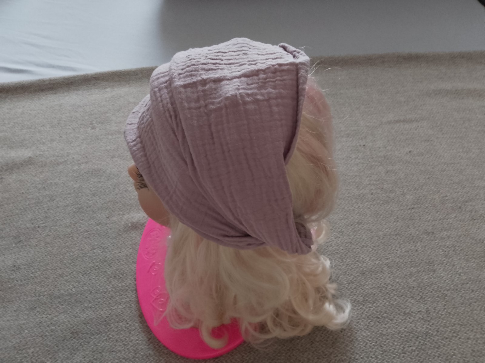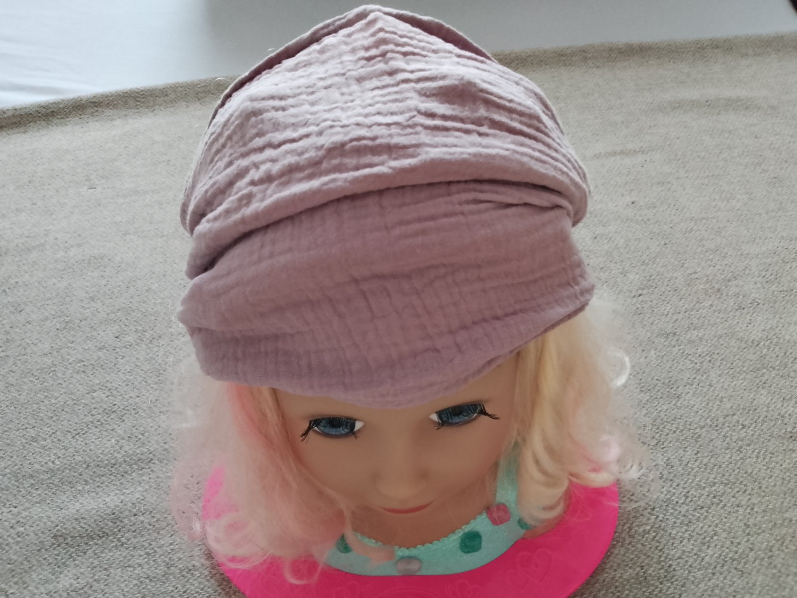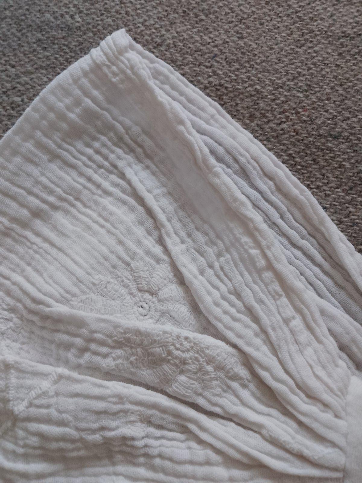 Detská šatka na hlavu v TOP stave. Vzatá bola max.2x. Bez poškodenia, dier a fľakov. Na obvod hlavy 45 - 48 cm. Veľmi príjemný ľahký, jemný, vzdušný materiál.