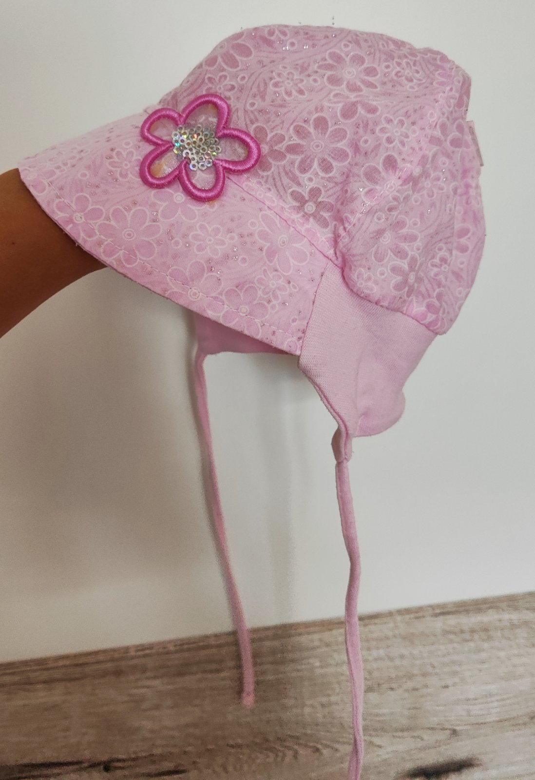 skladom, krásna prechodná čiapočka pre dievčatá - AJS - 42-038 95 % bavlna, 5 % bavlna Veľkosť 44/46 - vhodná od 1,5 roku dieťatka - na OH od 43 - 47 cm veľkosť 48/50 - vhodná približne do 5 rokov...