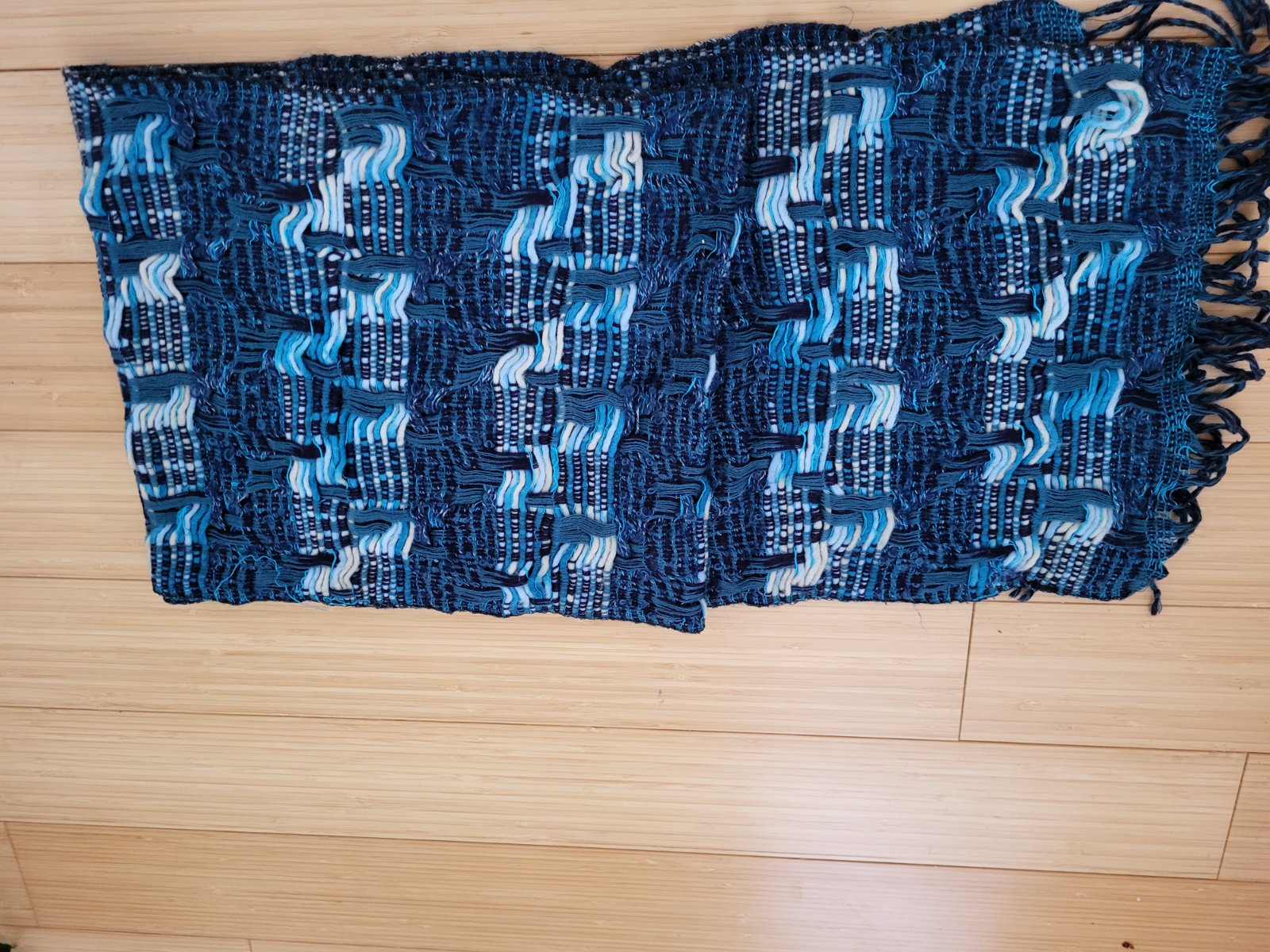 Modro-bordovy maxi šál,krásne vyzerá na krku,a naozaj zahreje,niekto využite určite častejšie ako ja🙂