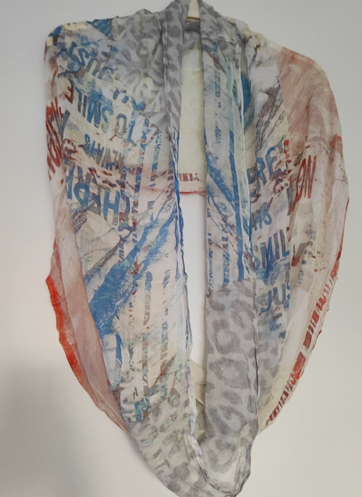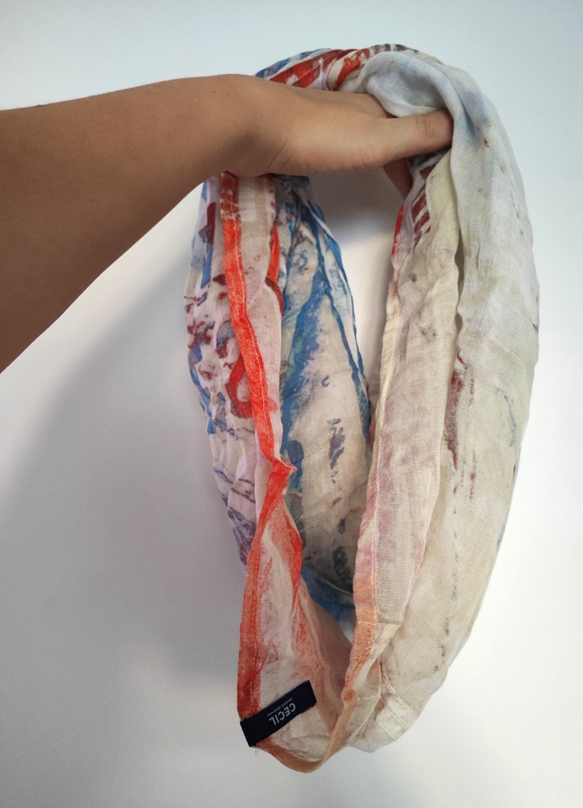 Asymetrický tunel...kombinácia hodvábu bavlny a polyesteru...na krku ju mám 2 krát omotanú....top stav, malinké zatiahnutie sem tam čo vôbec nie je viditeľné a prispôsobené cene