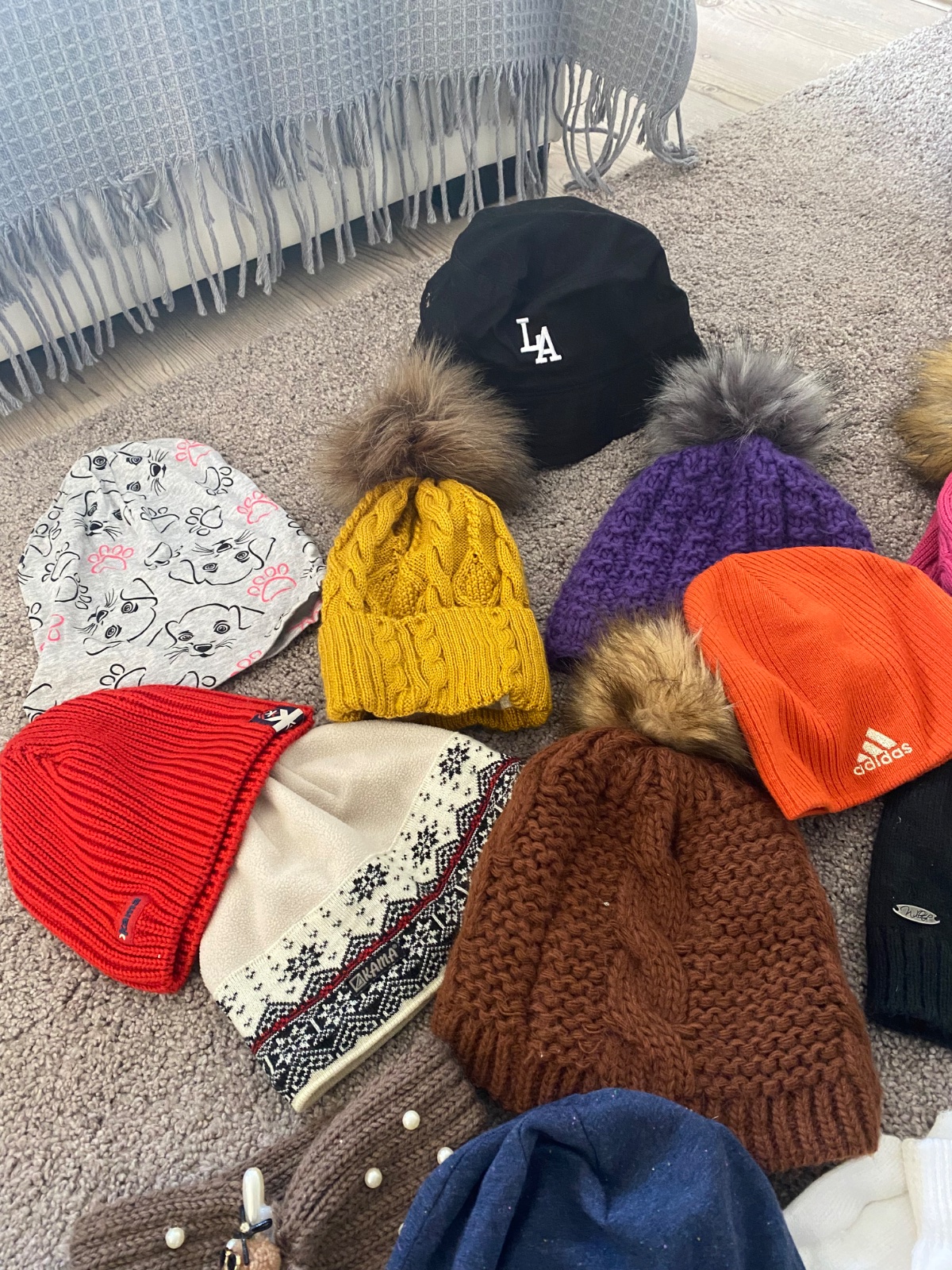 Predám čiapky veľkosť cca 12+ Na väčšine čiapok nieje veľkosť. Cena za čiapky 1€/ kus Spodný rad darujem k nákupu pri kúpe spolu