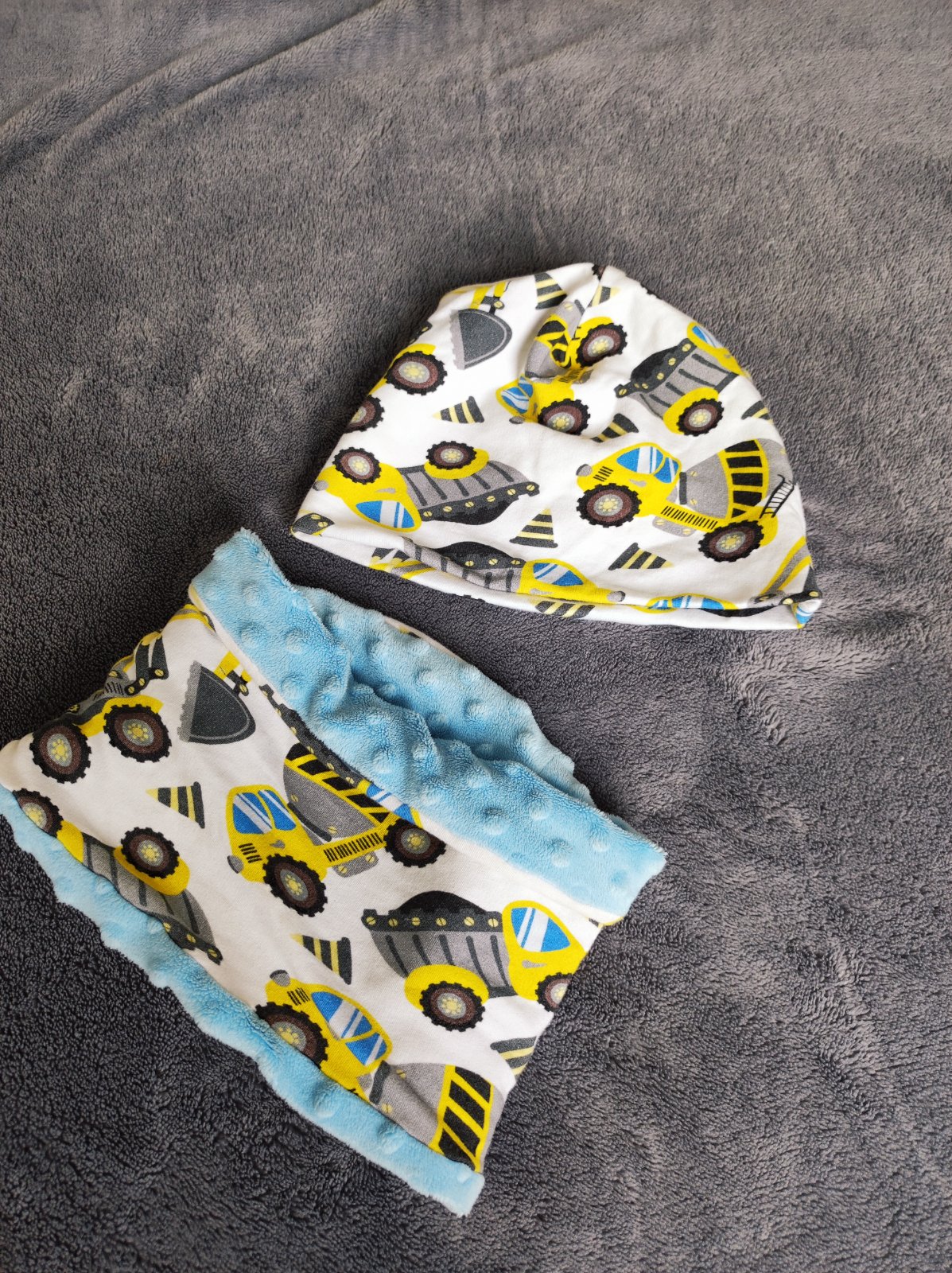 Ručne šitá čiapka a nakrčnik.