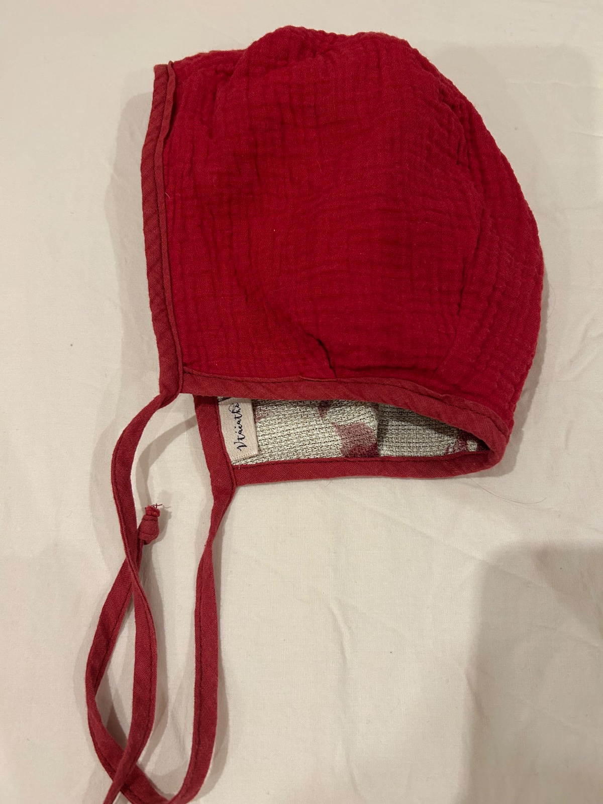 Obojstranny lanovo-muselinovy cepcek. Velkost tak 1-2 roky. Velmi pekny stav.