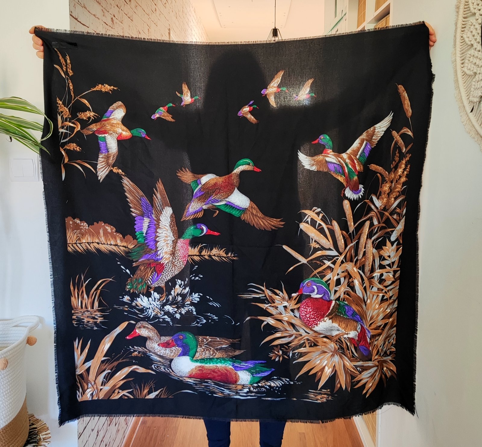 veľmi pekná šatka v 100% stave, čierna s bielo-sivými kvetmi, je tam efekt lesku na niektorých miestach veľmi pekná ak potrebujete konkrétny rozmer alebo detail, napíšte a premeriam alebo pofotím