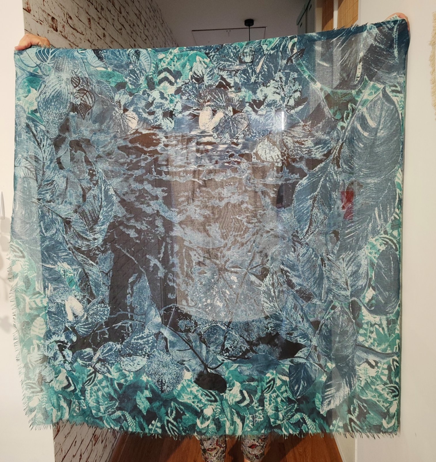 Priesvitná vzorovaná šatka so strapcami. Nepoužívaná. 140 x 80.