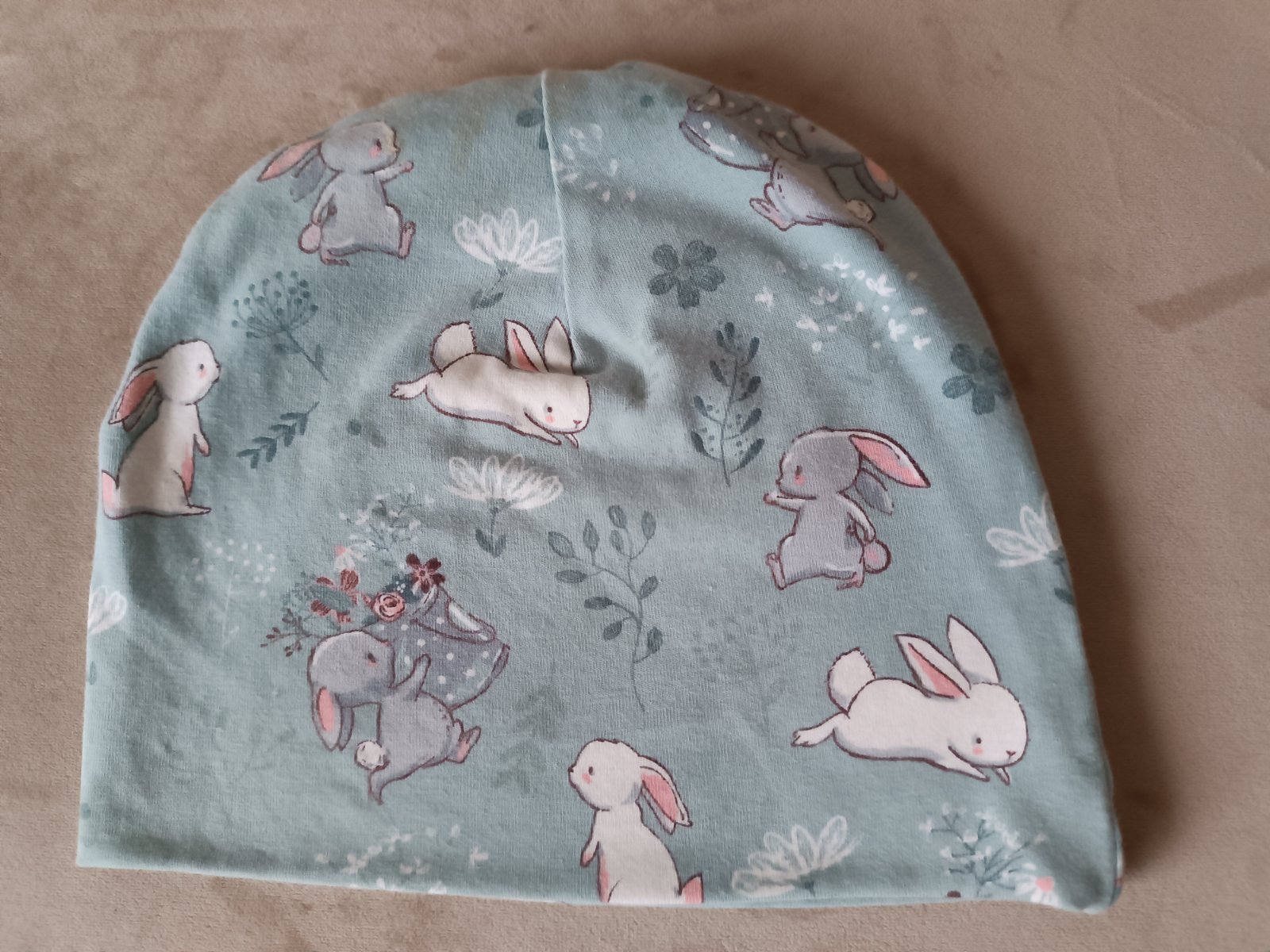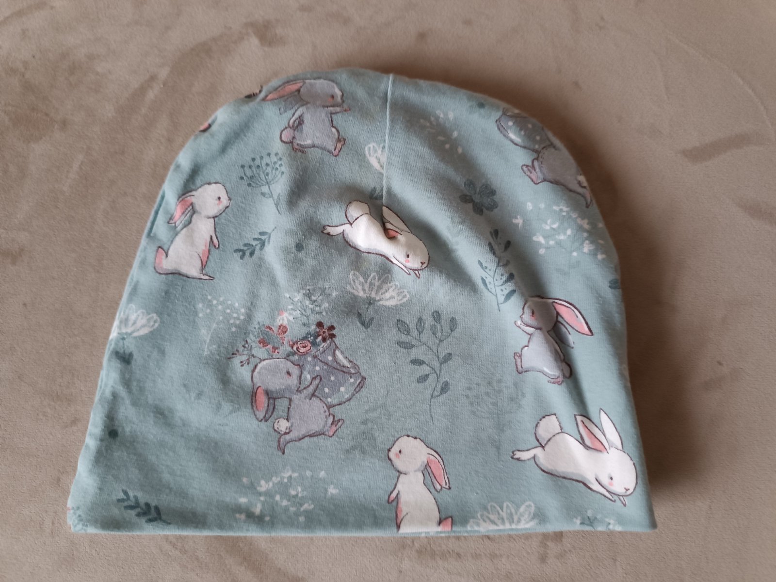 Pekná čiapka, šedomodrá, zameraná, príjemná, bez poškodenia