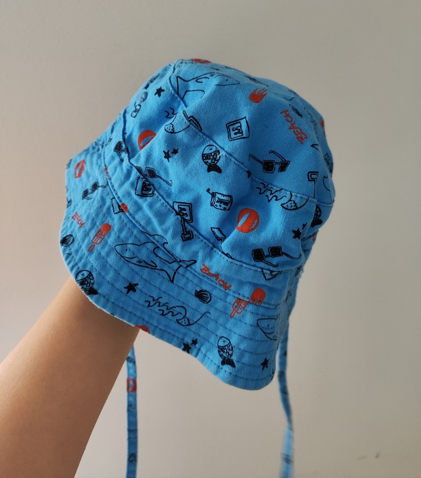 Minimálne nosený, ako nový, praktický, bavlnený klobúčik chrániaci ušká, vzadu prispôsobiteľná gumička. Na obvod hlavičky cca 48 cm.