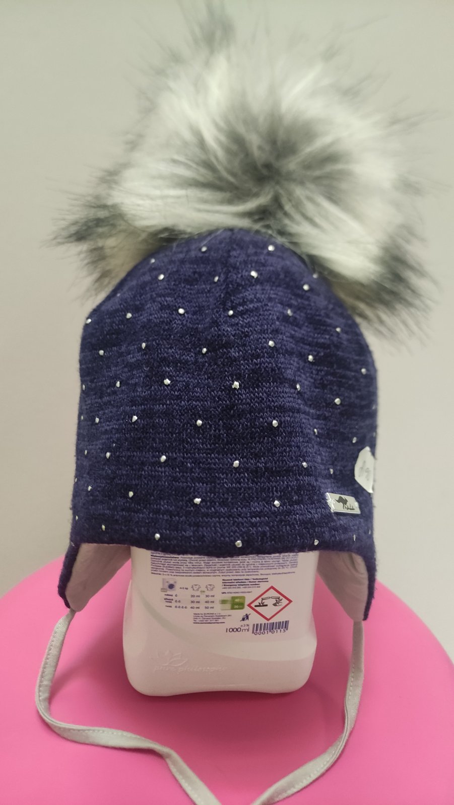 Čiapka je nosená, ale veľmi zachovalá, nemá poškodenia. Je elastická. Na štítku je obvod hlávky 53-54 cm. Obvod nameraný v kľude vychádza 47-48 cm. My sme nosili ako ročné batoliatko.
