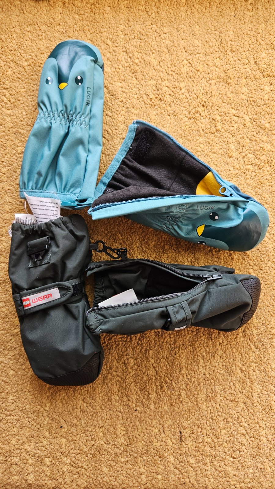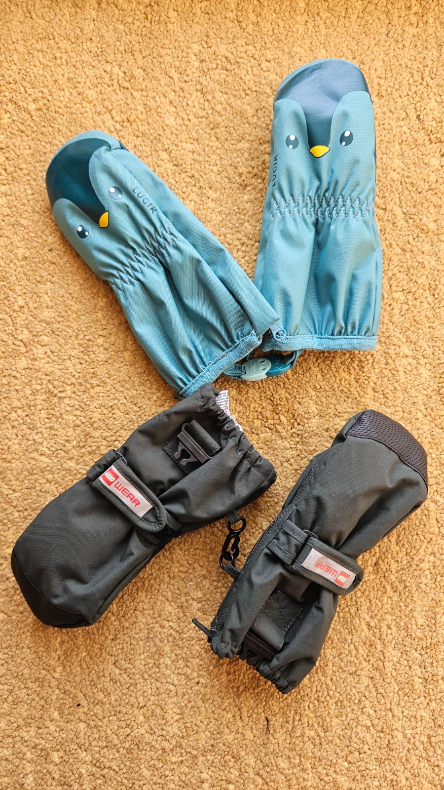 SkladomPredam detske zimne rukavice, oboje s moznostou dlheho zipsu, vdaka ktoremu je po otvoreni jednoduche rukavice nasadit na ruky. Oboje rukavice sa daju spojit dokopy (nestrati sa jedna z nich).