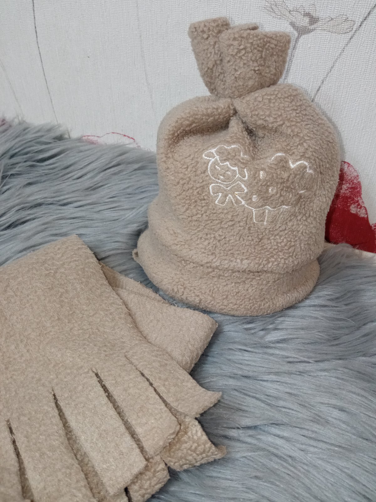 Chlapčenský zimný set: čiapka na zaväzovanie a šál.
