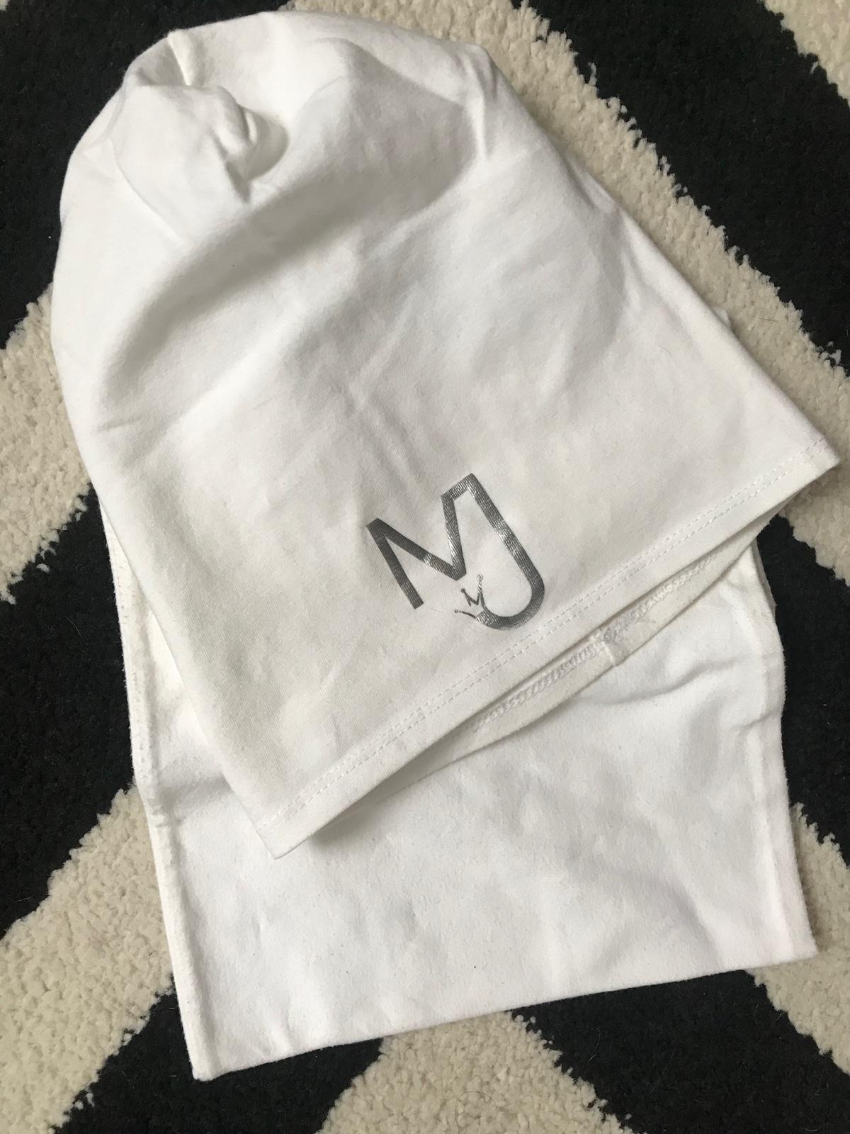 Nákrčník aj čiapka boli nosené, top stav, slovenská značka MJ fashion. Napis striebornej farby. Čiapka tenká, vhodná na prechod alebo aj do chladnejších letných dni a nákrčník je hrubší.
