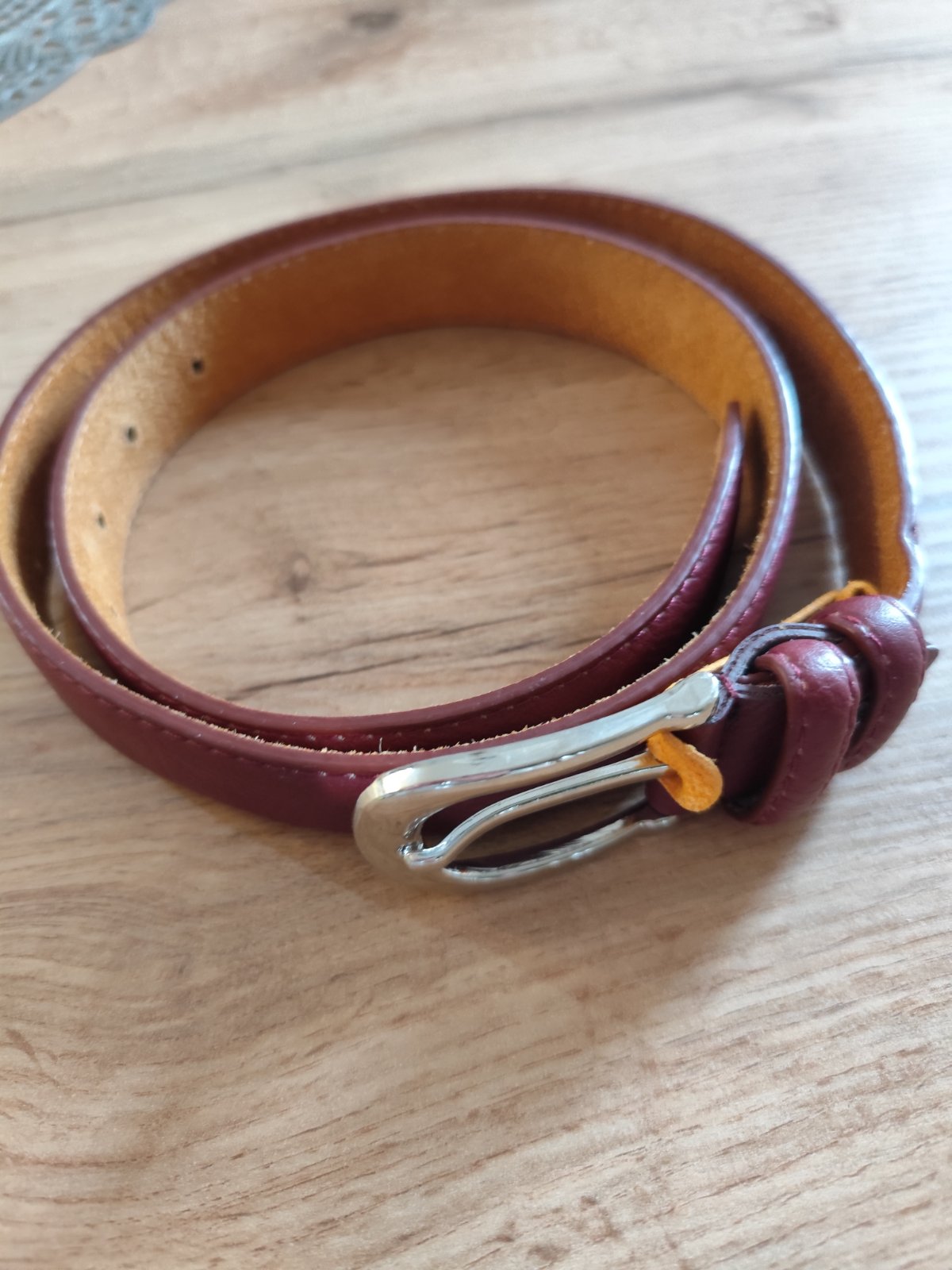 Bordovy kožený opasok, môžem tvrdiť,že je ako nový..dĺžka 100 cm