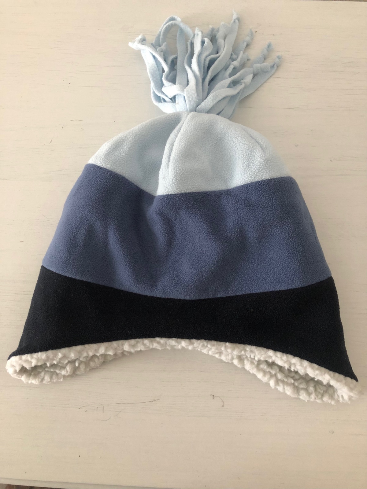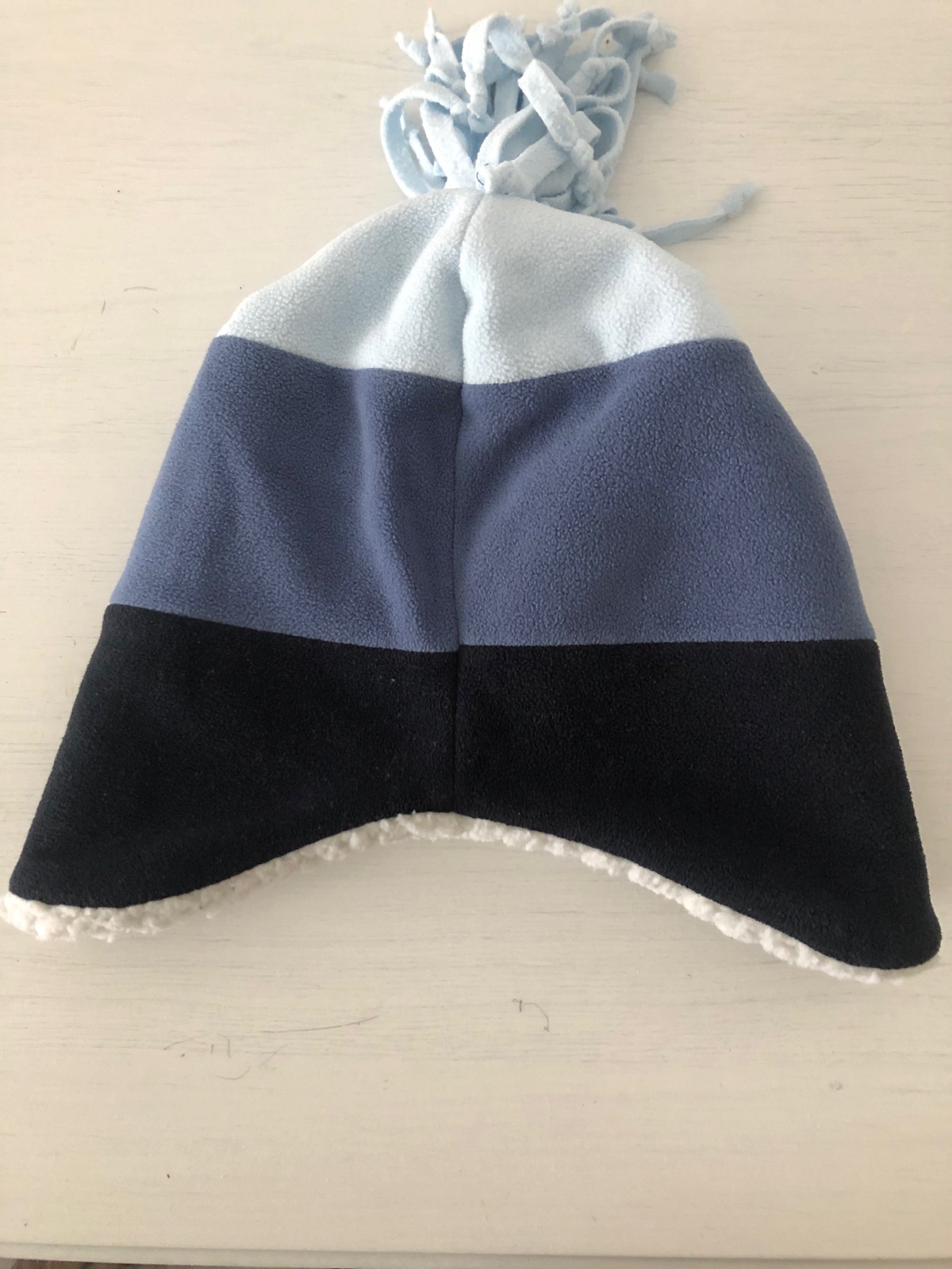 Pruhovana modrá zimná tepla M/L,vnútorný obvod 59cm, dĺžka od brmbolca ku celu 22cm,