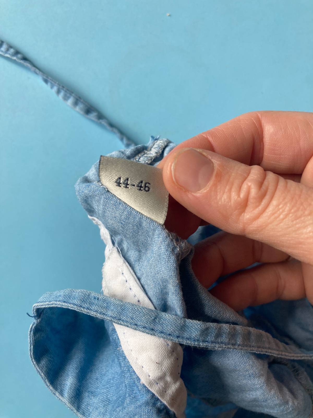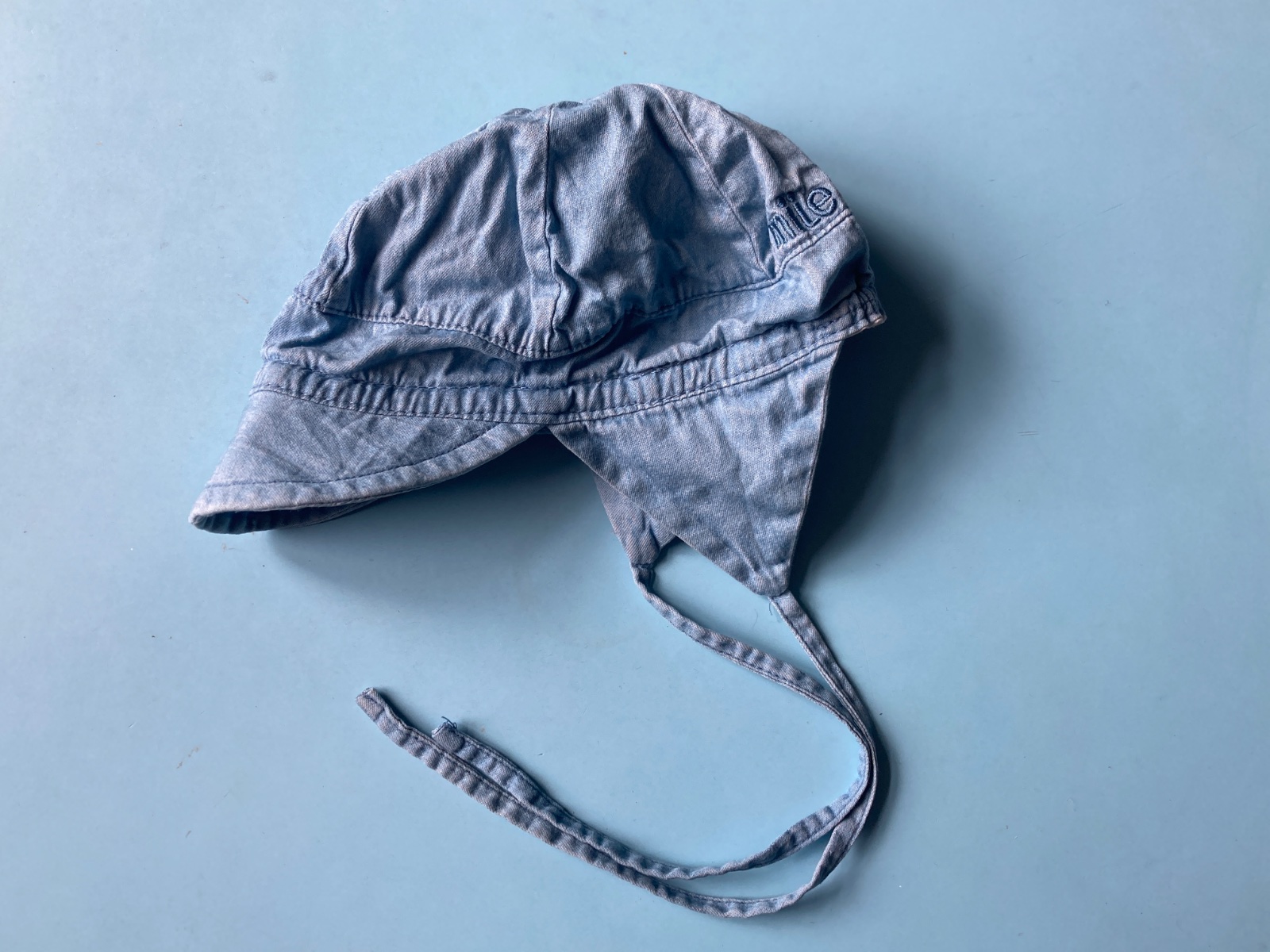 Čiapka z ľahučkej letnej riflovinyna zaväzovanie.