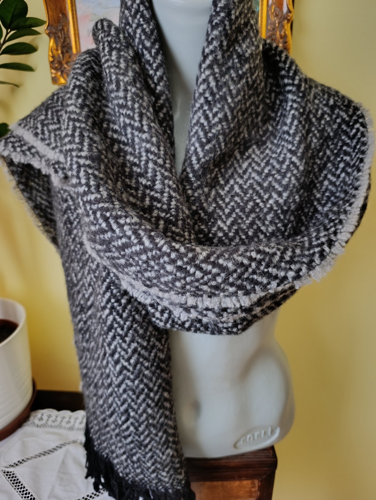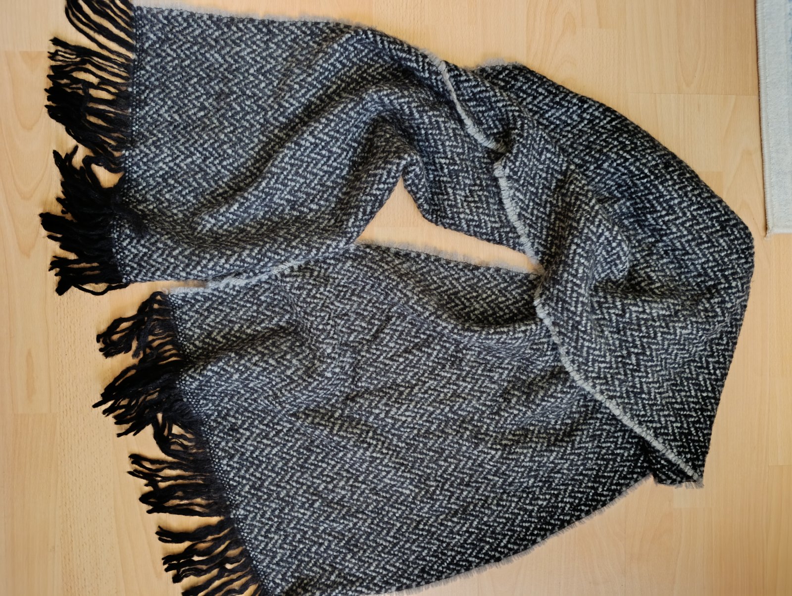 Kvalitný veľký šál s prímesou vlny, drahá značka,teplý a hrejivý, 45 x 186 cm + strapce 10 cm, pôvodna cena 120 €.