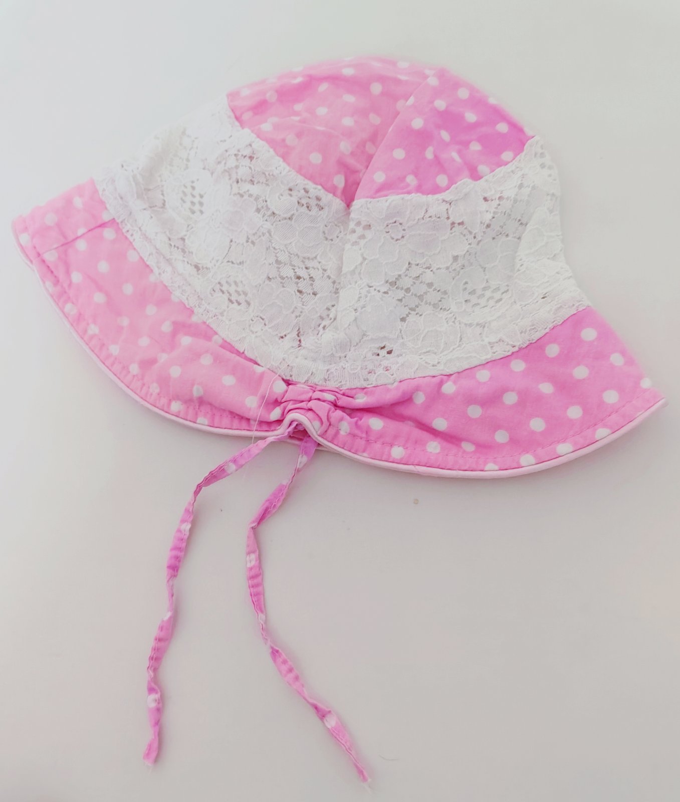 Predám biely klobúčik s bielymi bodkami a kvetinkovou výšivkou, ľahučký, 48 cm obvod hlavy a z vnútornej strany je šnúrka na prípadné stiahnutie.
